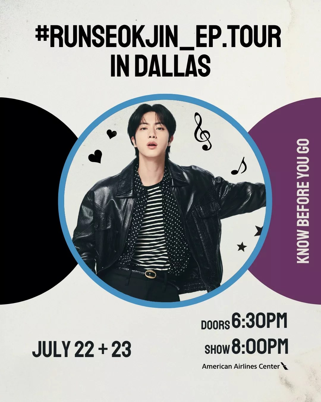 Jin will perform on Tuesday, July 22, and Wednesday, July 23, at 8 p.m. at American Airlines Center, 2500 Victory Avenue. Tickets are available starting at $87.30 on Ticketmaster.