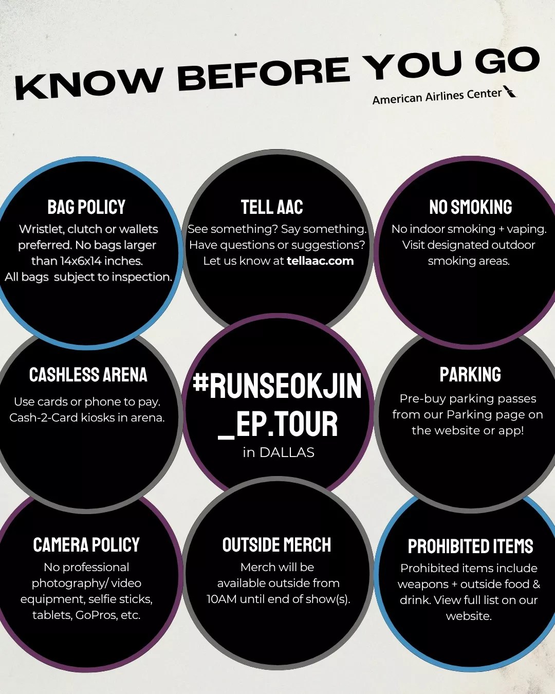 Chelsey Oliver, Marketing Director for The American Airlines Center, emailed us about preparations for the dates. The Center’s marketing team prepared a “Know Before You Go” visual for its policies. Parking and public transportation information can be found here.