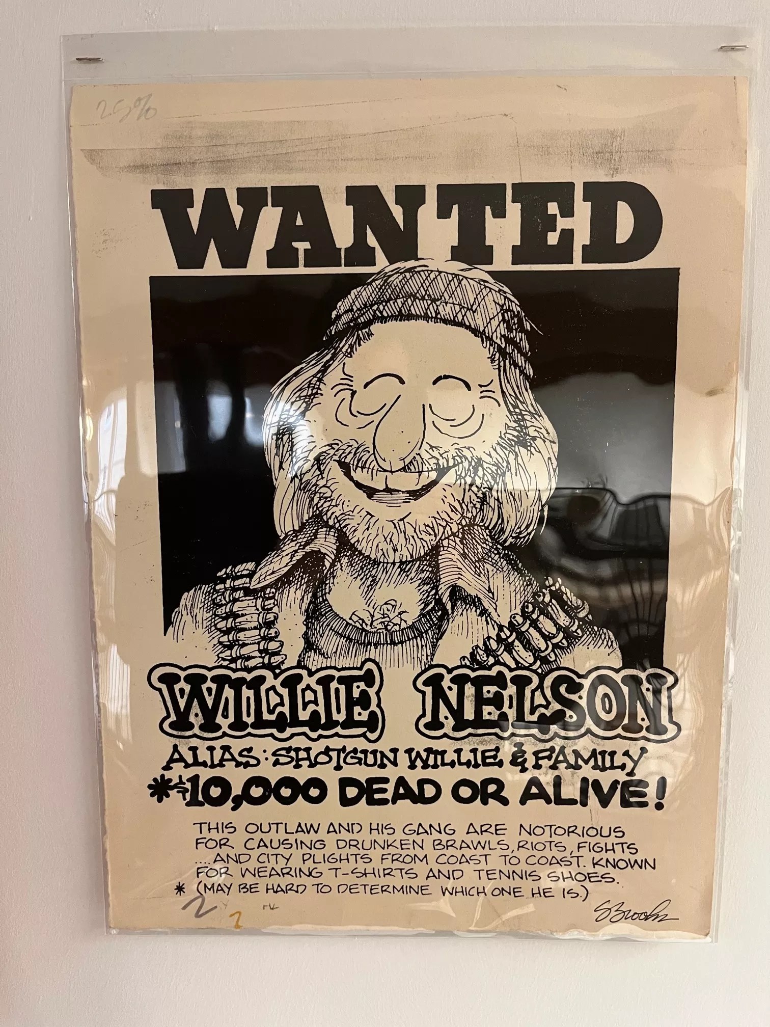 A “Wanted” poster by Steve Brooks. If you want to know anything about Willie, you’ll learn it this weekend in Denton.