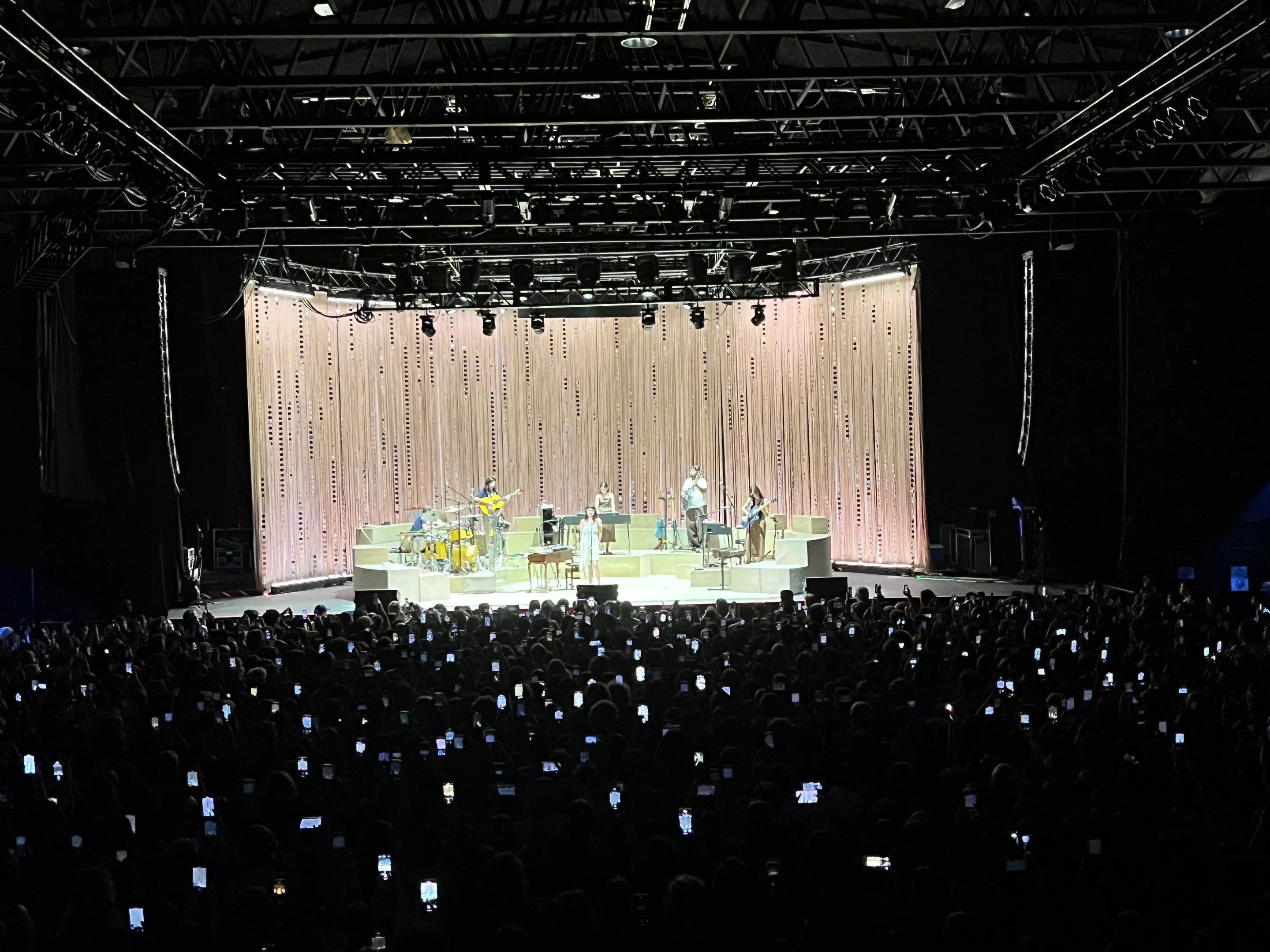 She wore bulky headphones over her ears, like she was in her bedroom back in 2017, about to upload “Pretty Girl” on YouTube and kickstart a career that has now introduced her to Jack Antonoff, Charli XCX and legions of adoring fans. And even in those moments when the tracks were faster-paced, the flutist was on fire and the drummer was playing like this was a Foo Fighters audition, Cottrill simply swayed and mildly sashayed, endearingly locked in her own vibe-y world.