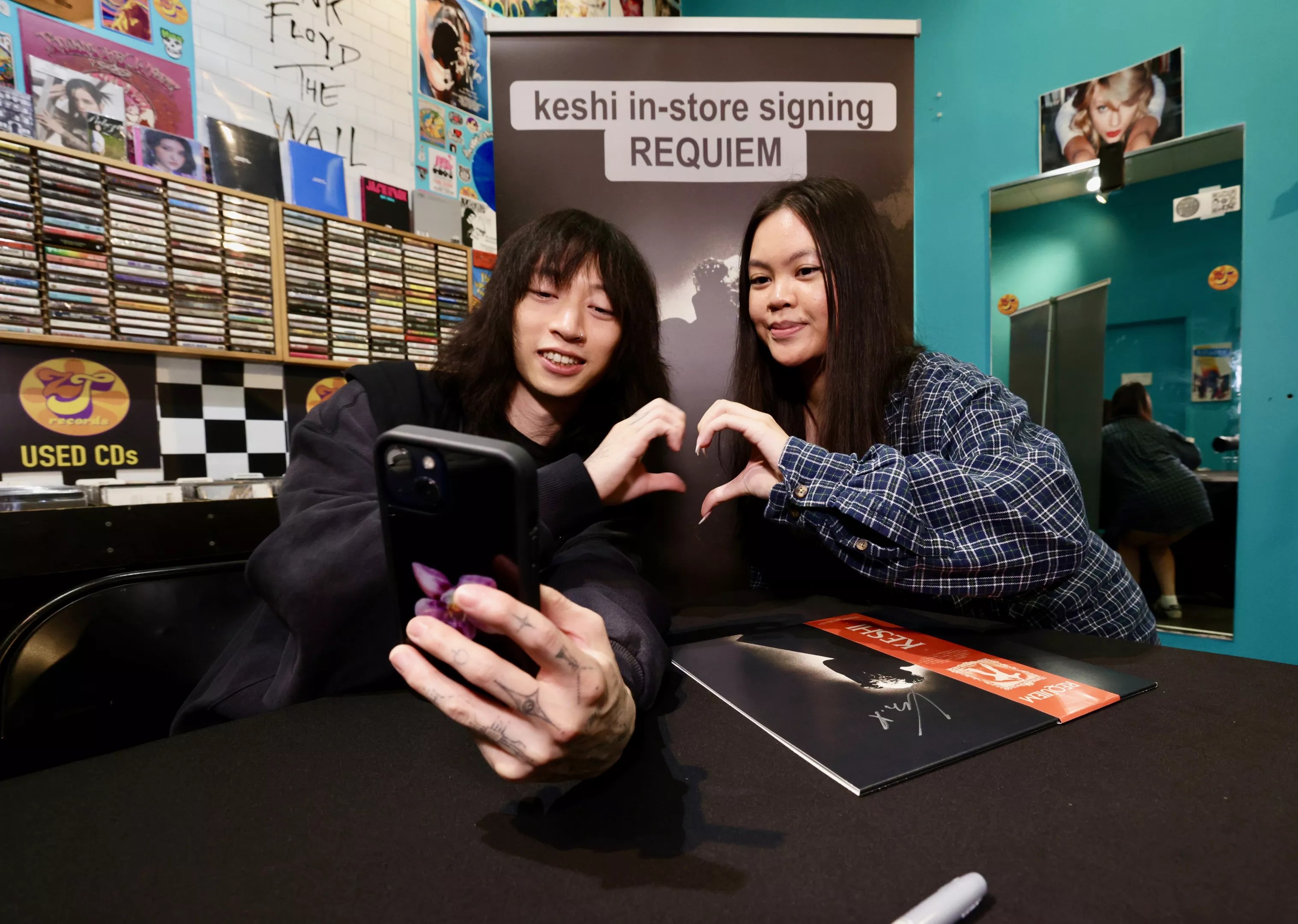 Passersby might’ve thought Elvis had entered the building, as several guests left crying and others left overly giddy. Once every fan had a chance to meet their idol and take a photo, store owner Phil Ramirez locked up and let Keshi – a vinyl fan himself – shop in private (he picked up a couple of anime soundtracks) before catching a plane to his next destination.
