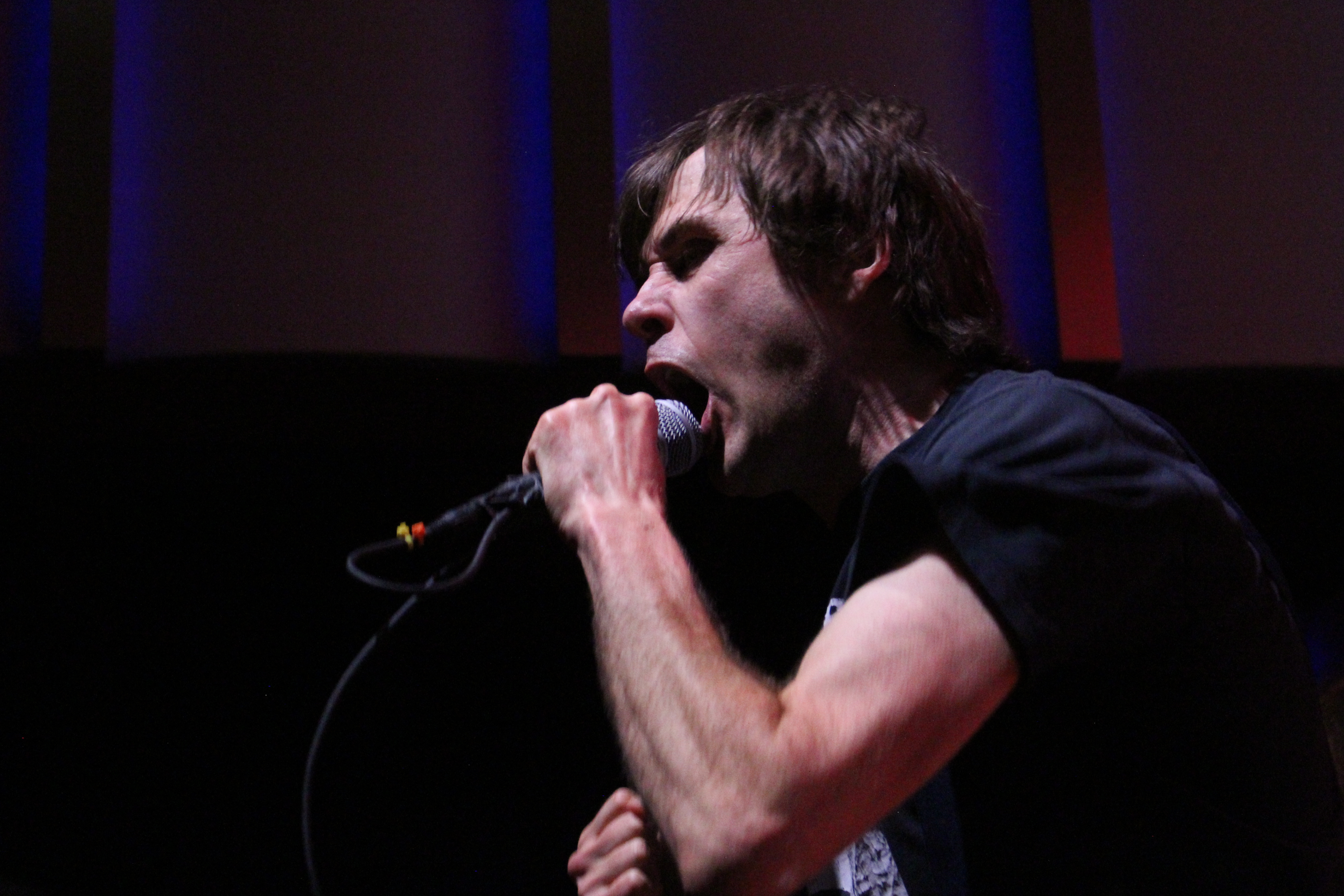 The crowd thinned out slightly after Melvins’ set, but not enough to keep Napalm Death lead singer Barney Greenway from treating the crowd of a few hundred like a few hundred thousand. He entered the stage careening around each corner, wearing tight suspenders and strutting with the gait of a 1920s boxer. At every turn, Greenway inspired complete chaos in the adoring crowd, with a couple of violent mosh pits and dozens of crowd surfers riding the wave.
