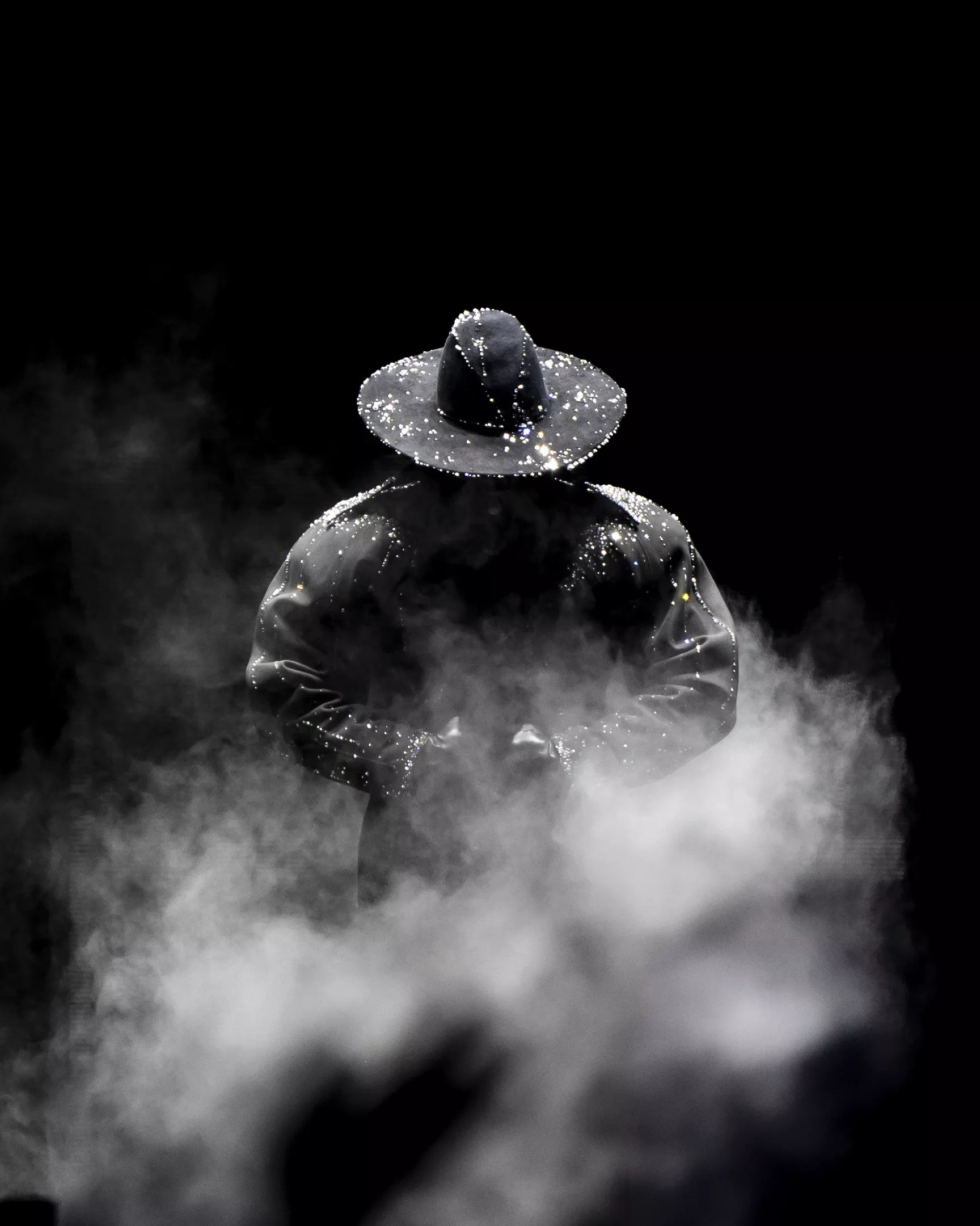 “I want you to know how important these shows [in Dallas] are,” he said, standing alone at the foot of the immense, oval-shaped runway jutting out from the stage. “The D is where I landed on planet Earth. There is beauty in all tragic starts.”