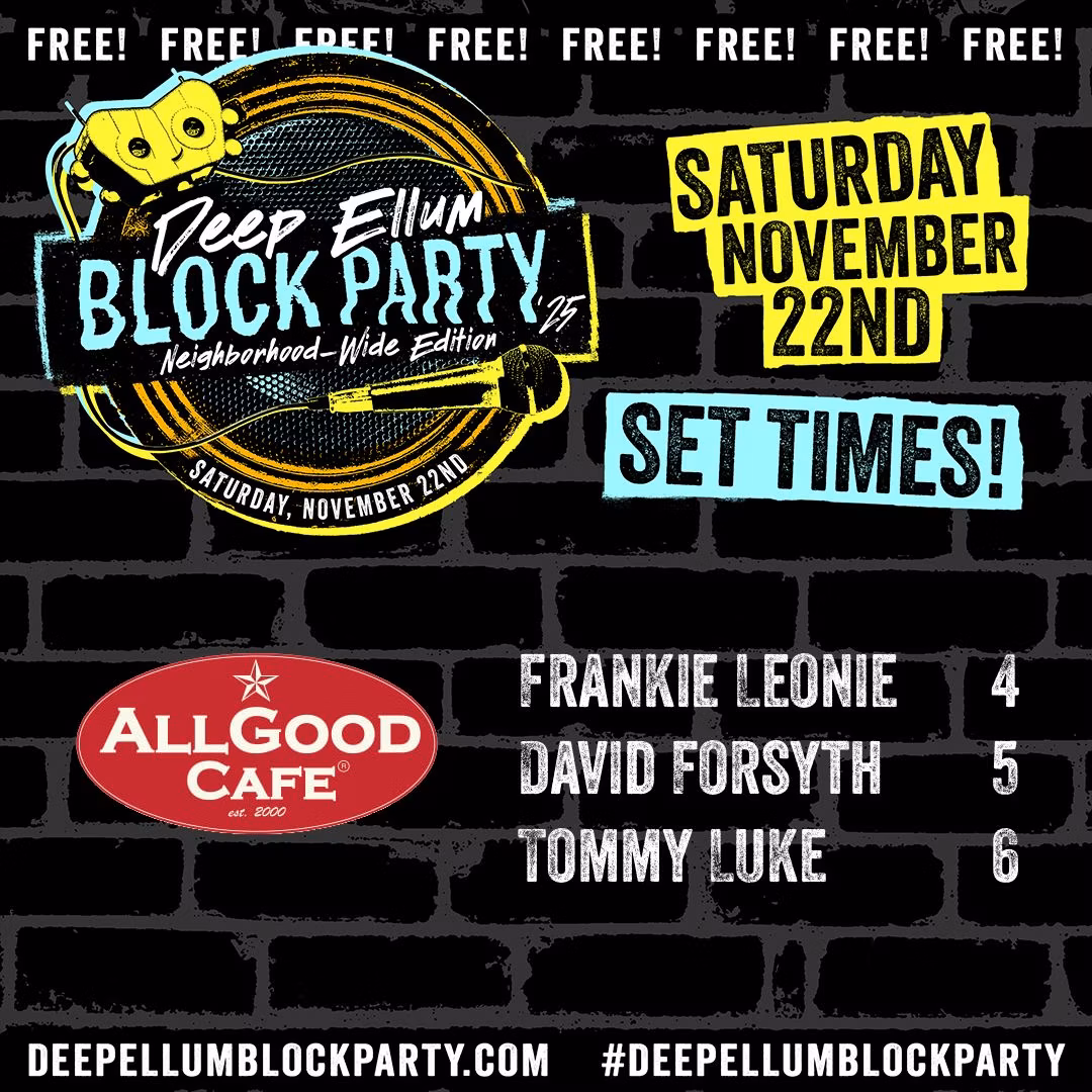With over 100 artists set to hit 20-plus venues, it truly is all the free music you can handle. The general buzz surrounding the Deep Ellum Block Party is the live pro wrestling, headliners Mothership and Joshua Ray Walker and an A.Dd+ reunion. Whether you’re a seasoned Deep Ellum Block Party goer or a newcomer eager to dive into local music, we got you covered with a schedule you can follow.