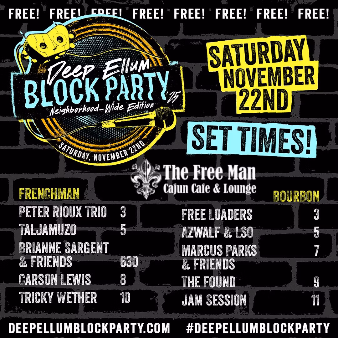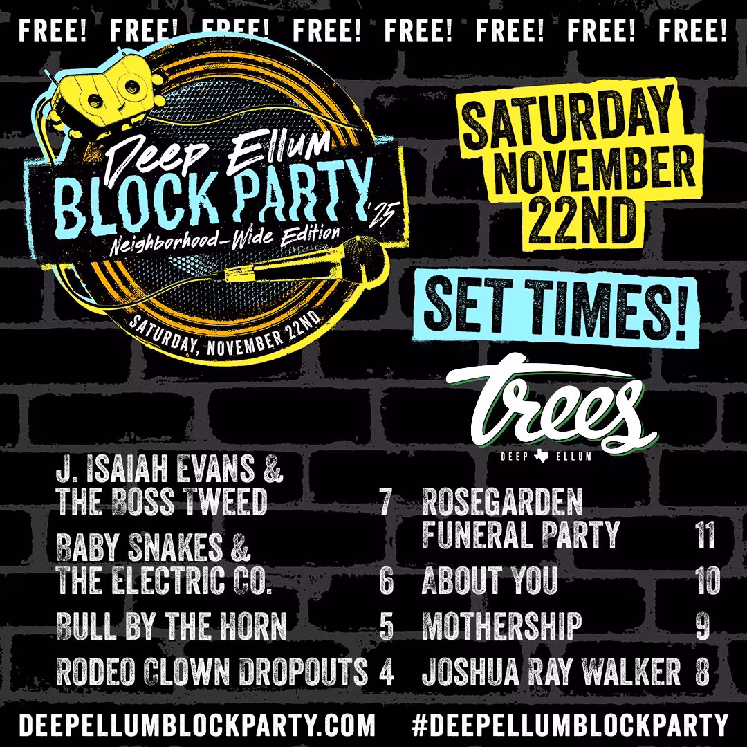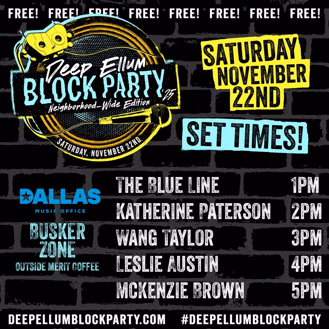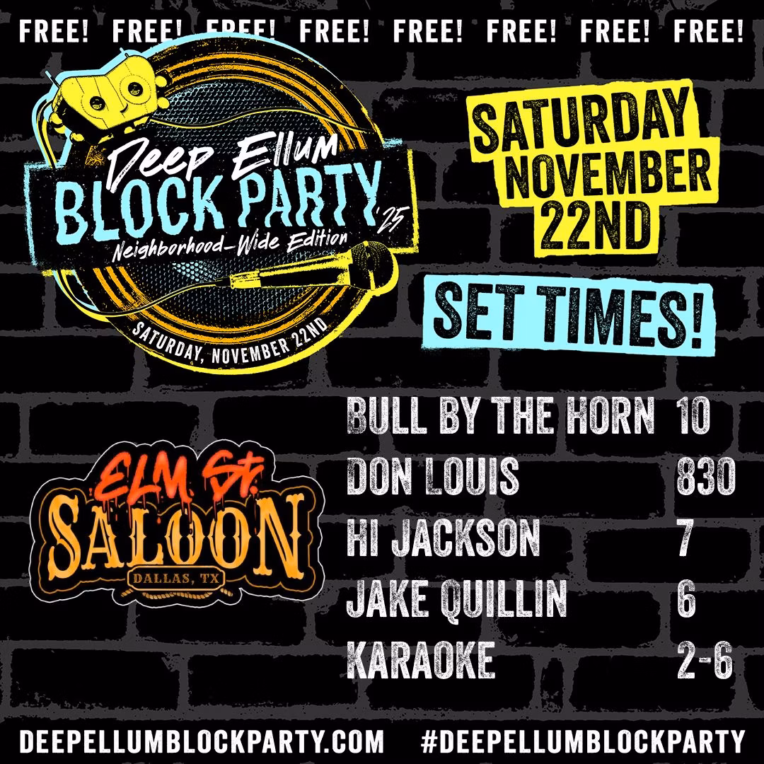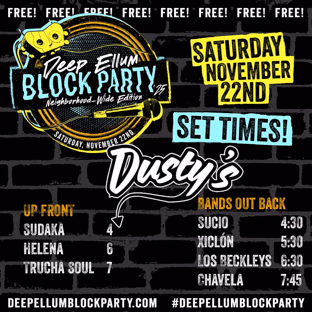 Below is a suggested guide. You can also download the flyer of set times from your preferred location. It’s all about celebrating everything Deep Ellum has to offer and what makes it special throughout the year.