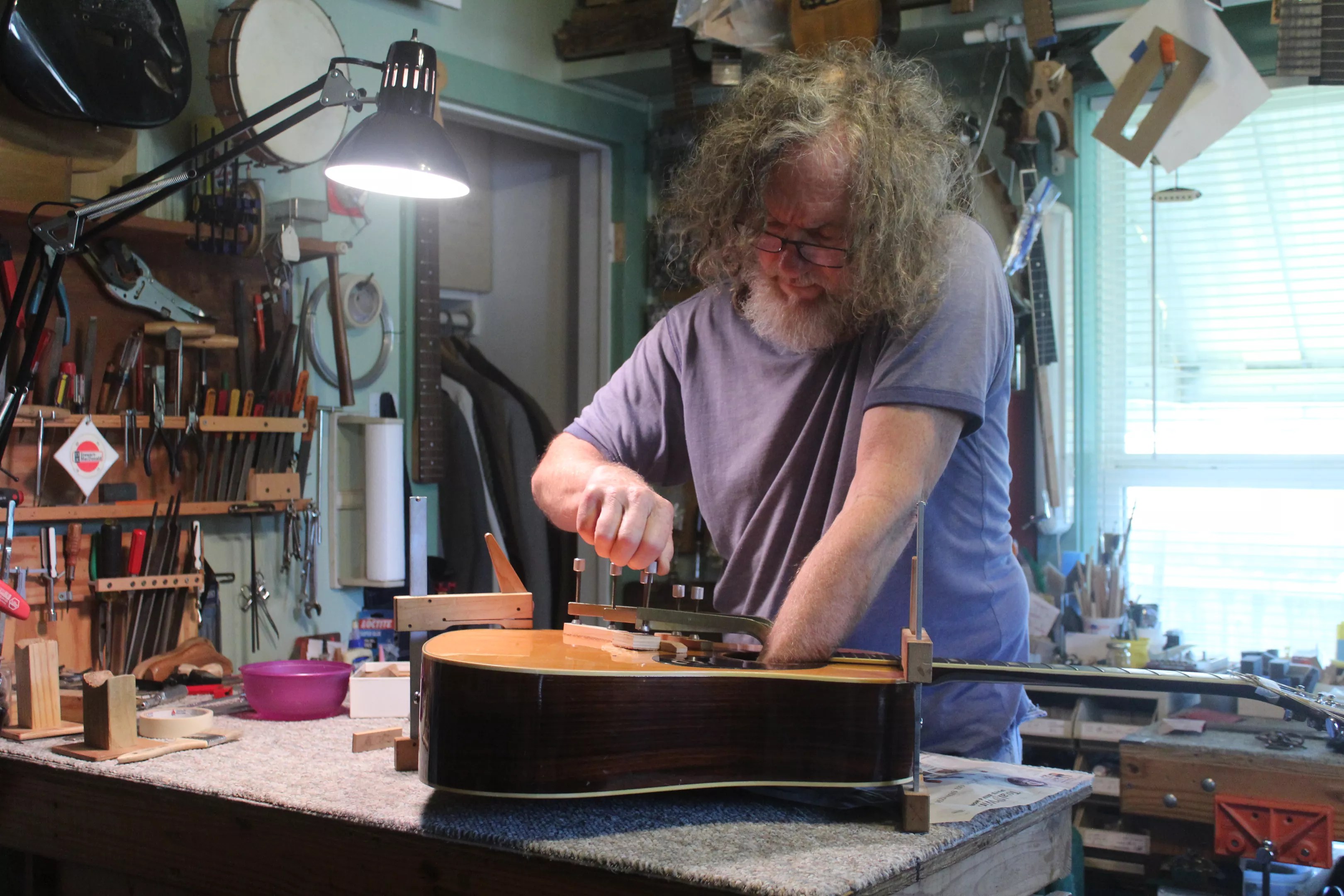 For 20 years, luthier Gregory Lange of Little D Guitars has serviced stringed instruments for local musicians.