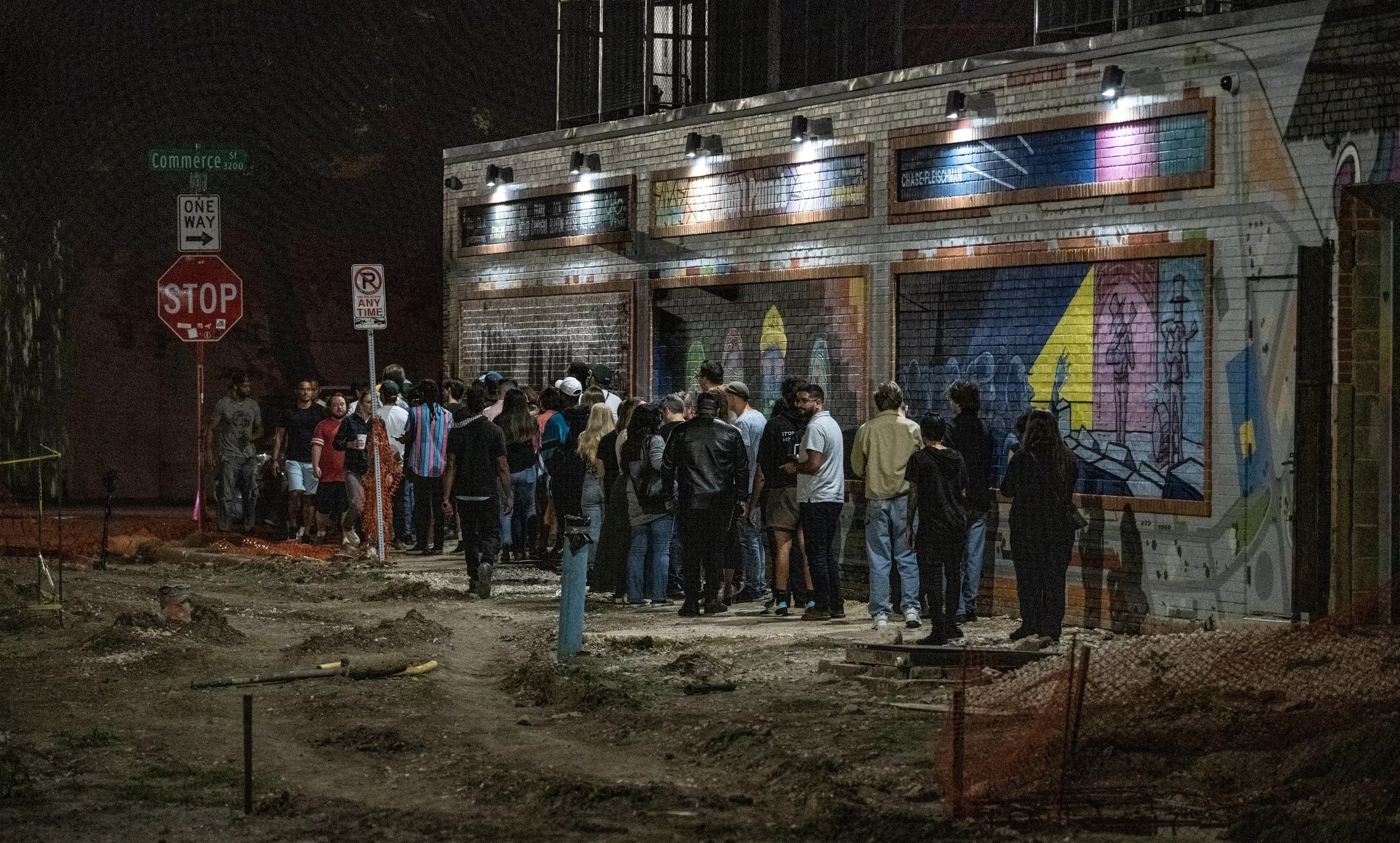 DOMi and JD Beck had a line going outside the Deep Ellum Art Company. Creative landscaping provided by the city of Dallas.