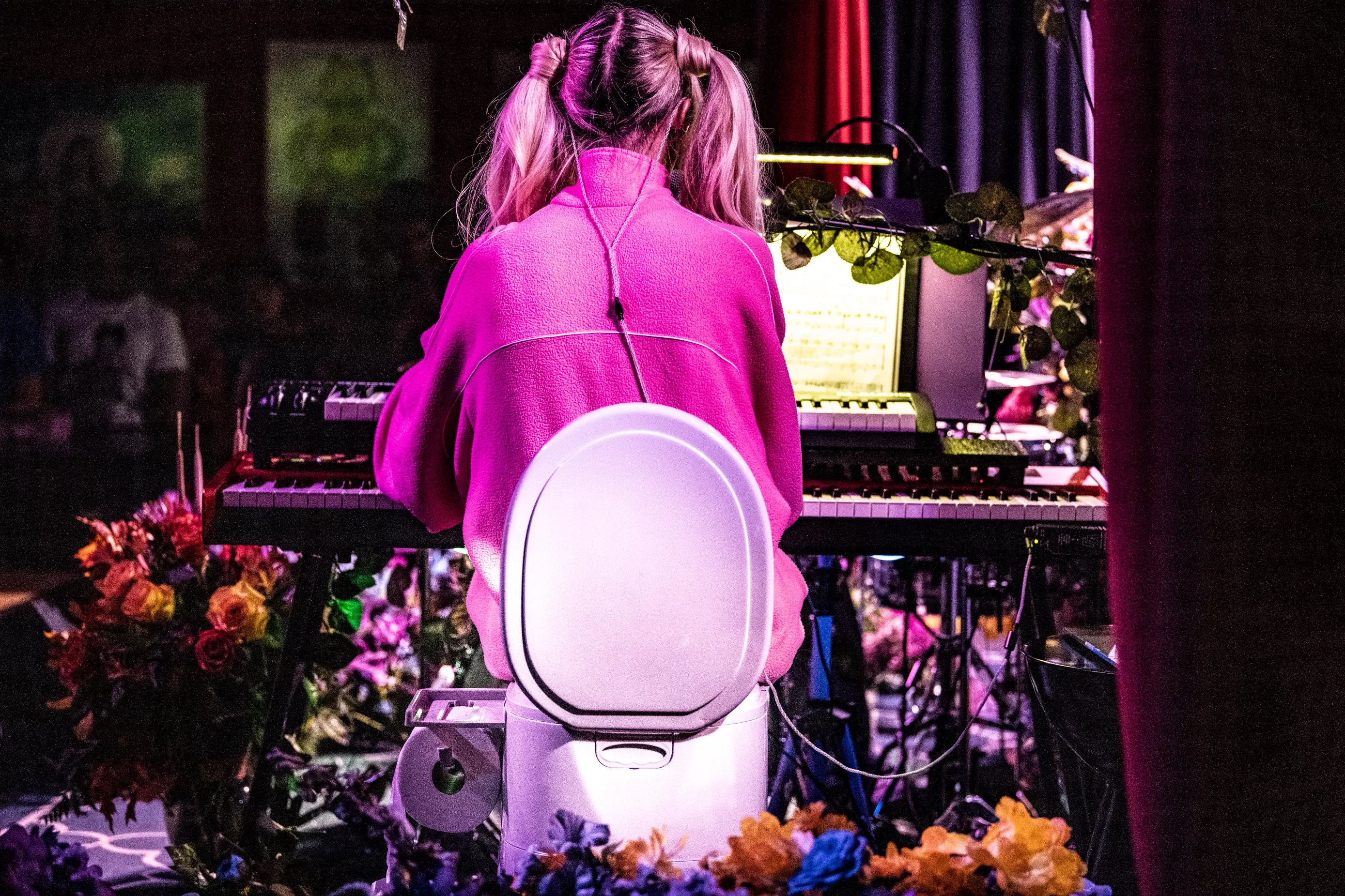 The teenage band members seem eager to ditch the “child prodigy” label that painted their early years. Of course, DOMi is playing the tour while sitting on a real toilet, complete with a roll of TP, so maybe they are just trading the “child prodigy” descriptor for “enfants terrible.”