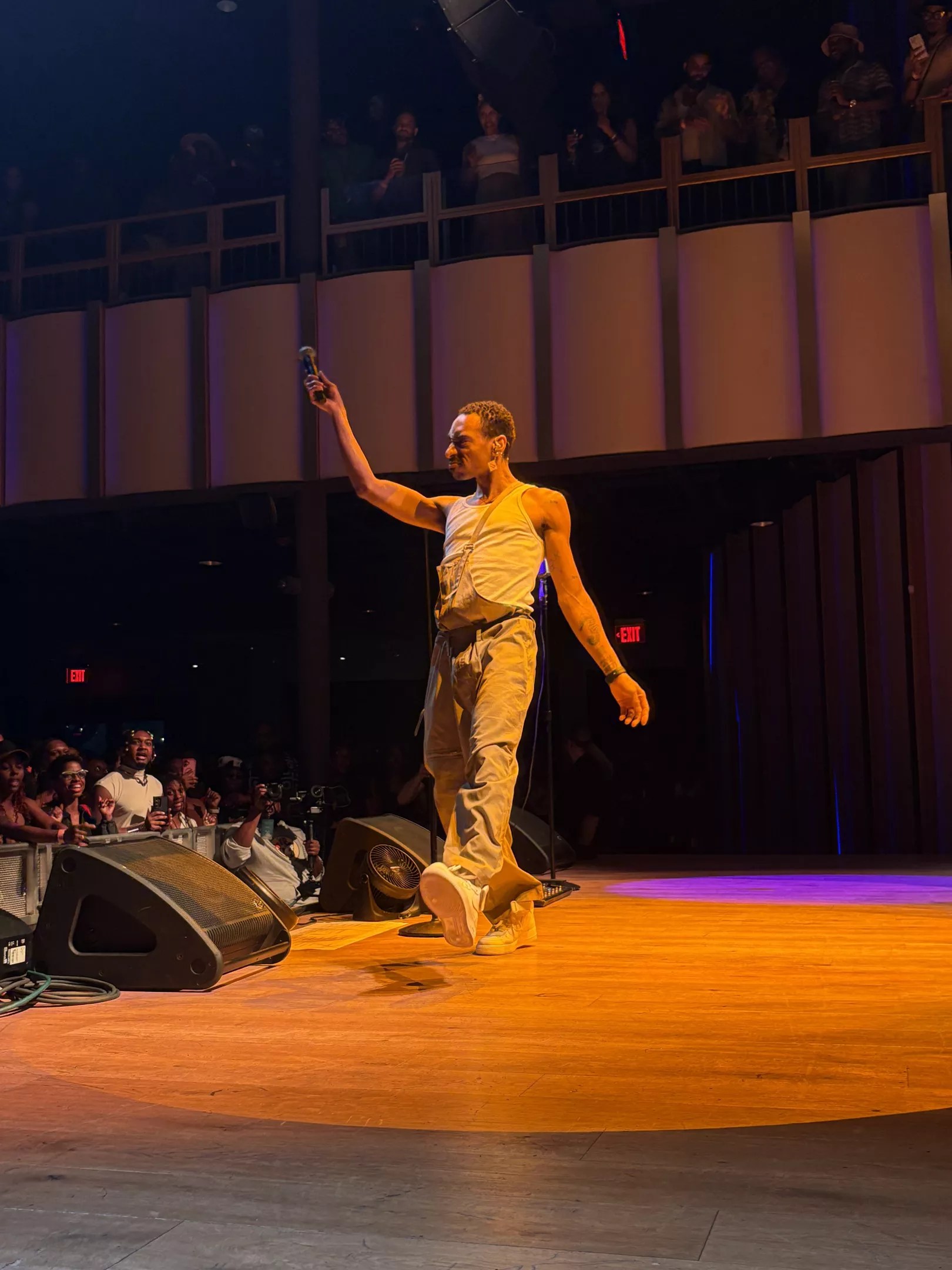 As we moved past the dance-style records sung on the modern mics, there was a vintage microphone evidently exclusively used for the ballad-style and slower tracks. He transitioned to belting out the heavy bass track “Unknown” under the spotlight.