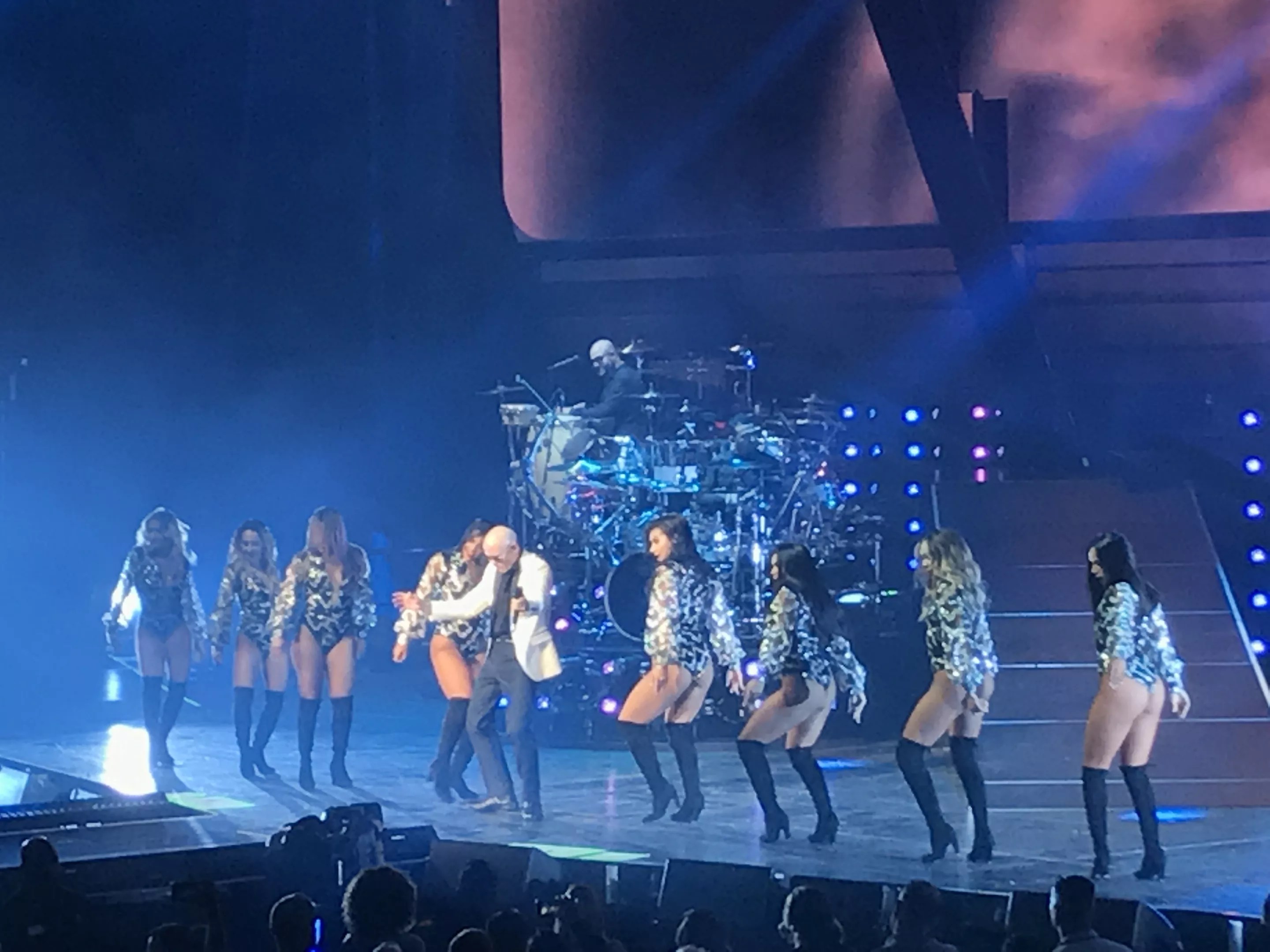 Pitbull’s group of eight backup dancers complemented his dancing Friday night.