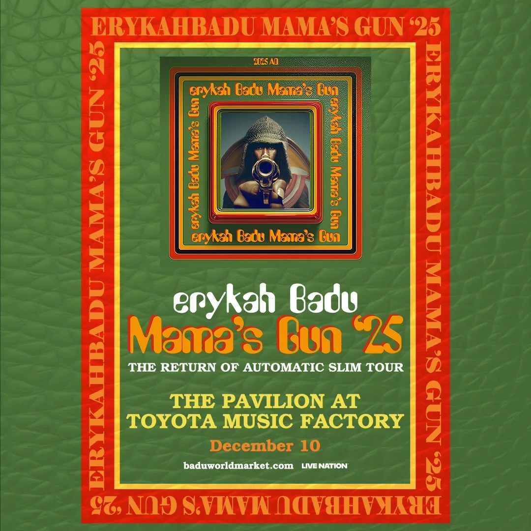 Just weeks after announcing the 10-date tour with The Alchemist, Badu dropped new tour dates, celebrating the 25th anniversary of Mama’s Gun. And yes, Dallas is included on the tour.