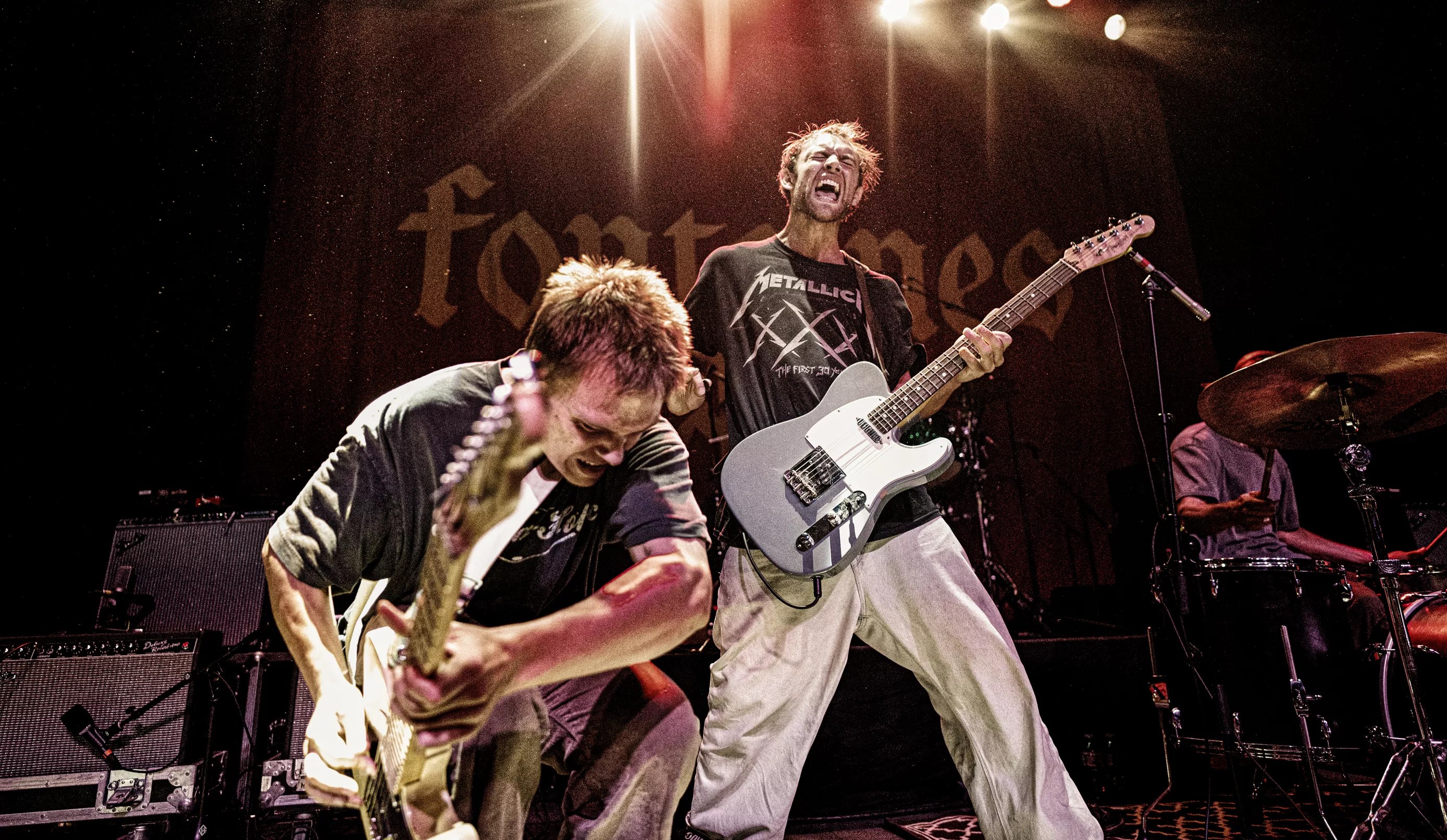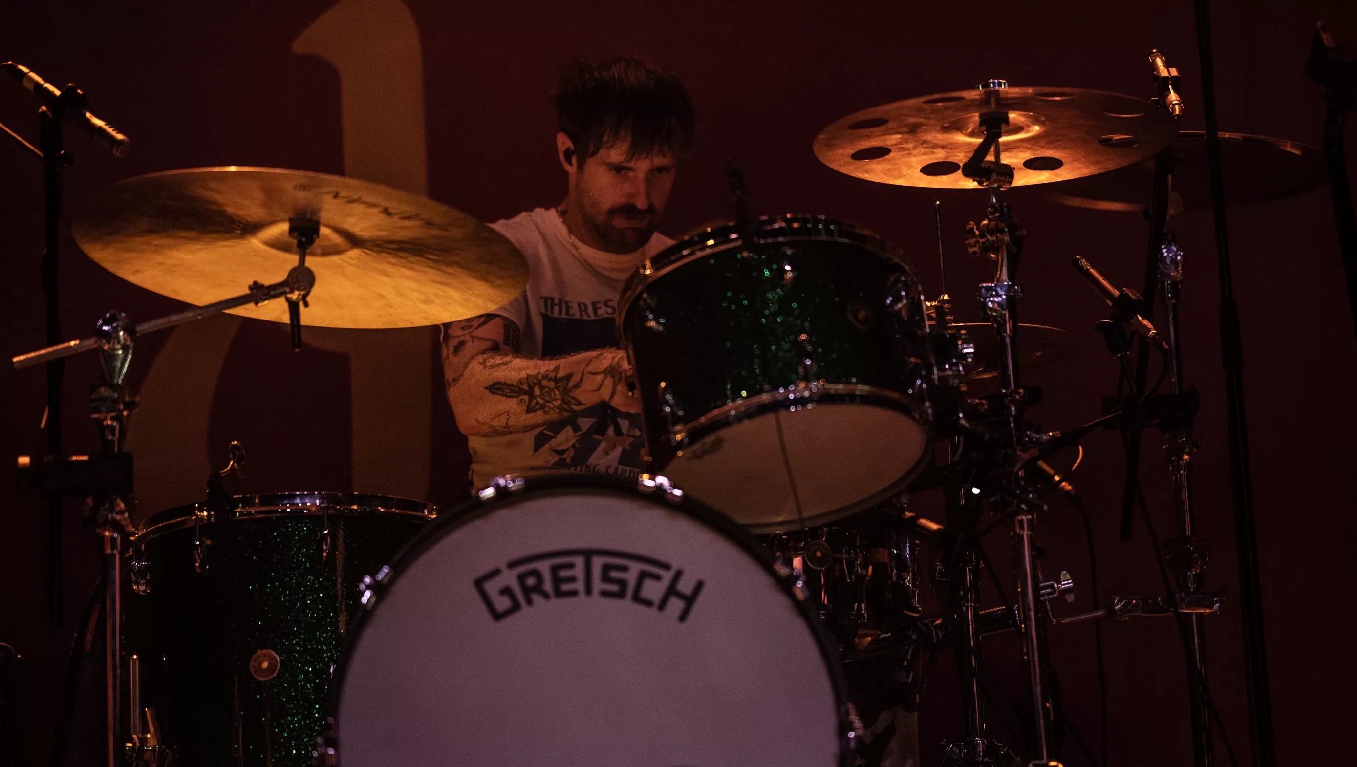 The band behind him was relentless, built like a champion EPL team. Guitarists Carlos O’Connell and Conor Curley provided flash out on the wings, with Conor Deegan (bass and occasional guitar) and drummer Tom Coll giving the club a reliable, constant structure up the middle. A little flash on the edge. Mike Brooks Some more flash on the other edge. Mike Brooks Keeping the band steady with structure up the middle. Mike Brooks