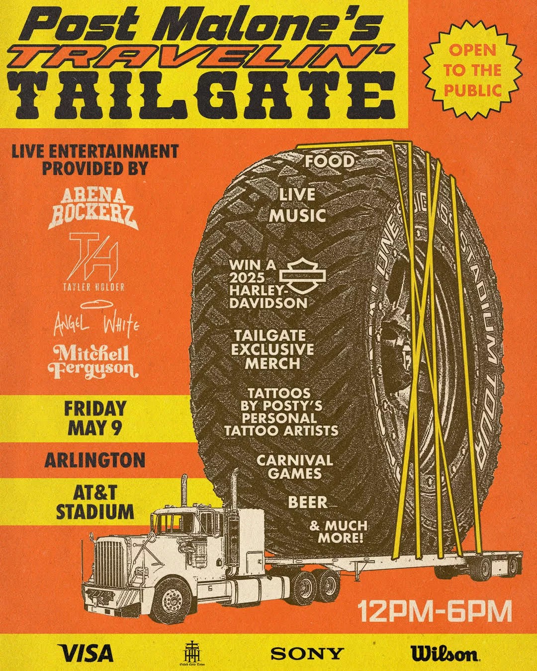 Post Malone’s Travelin’ Tailgate is open to the public.