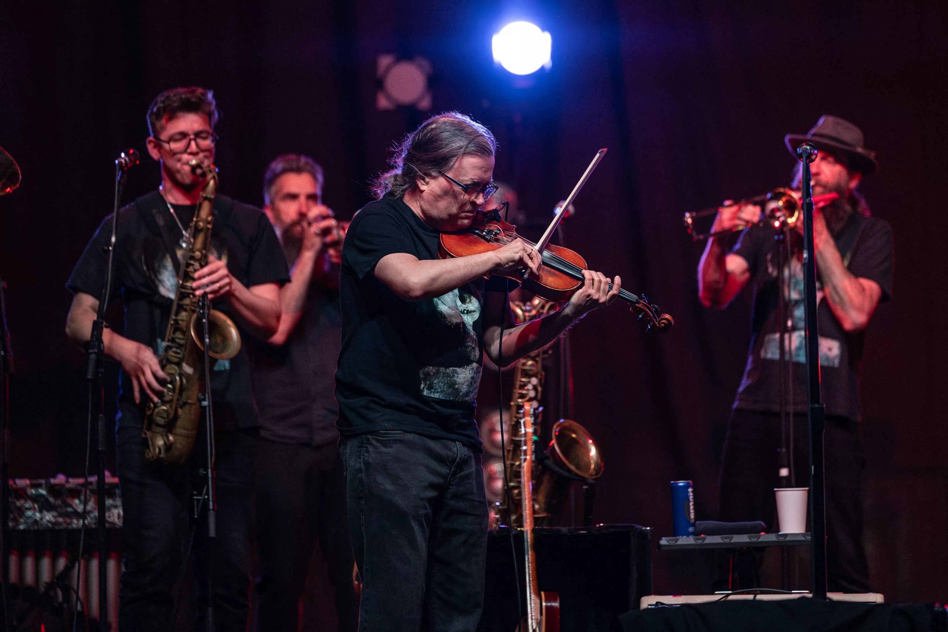 Gano is surrounded by a cacophony of horns played by the band’s “auxiliary” members.