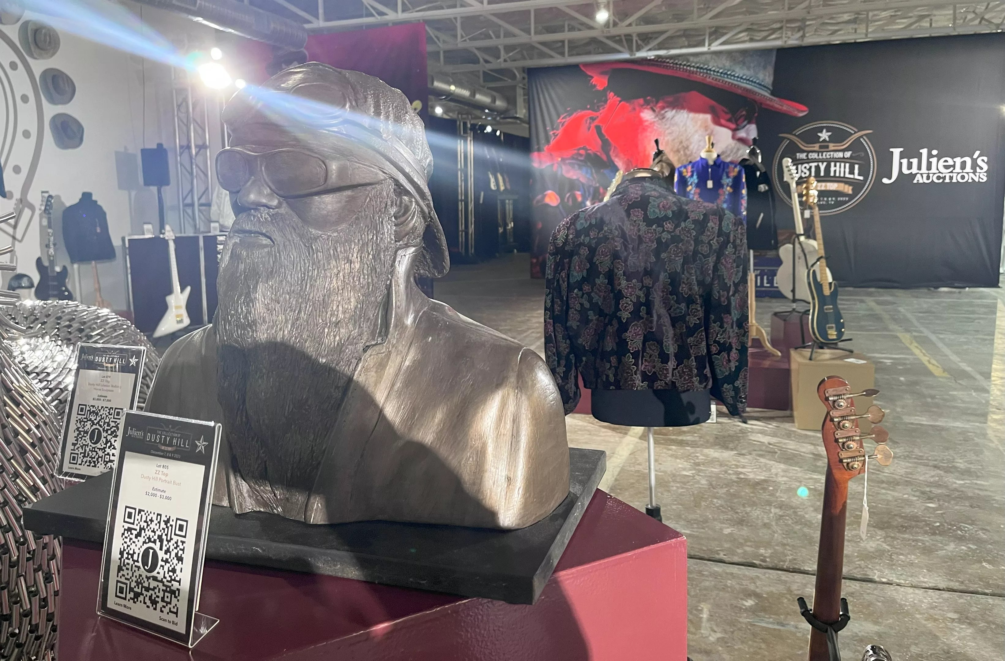 A bust of the late ZZ Top bassist Dusty Hill is one of more than 1,000 items to be auctioned starting on Thursday, Dec. 7.
