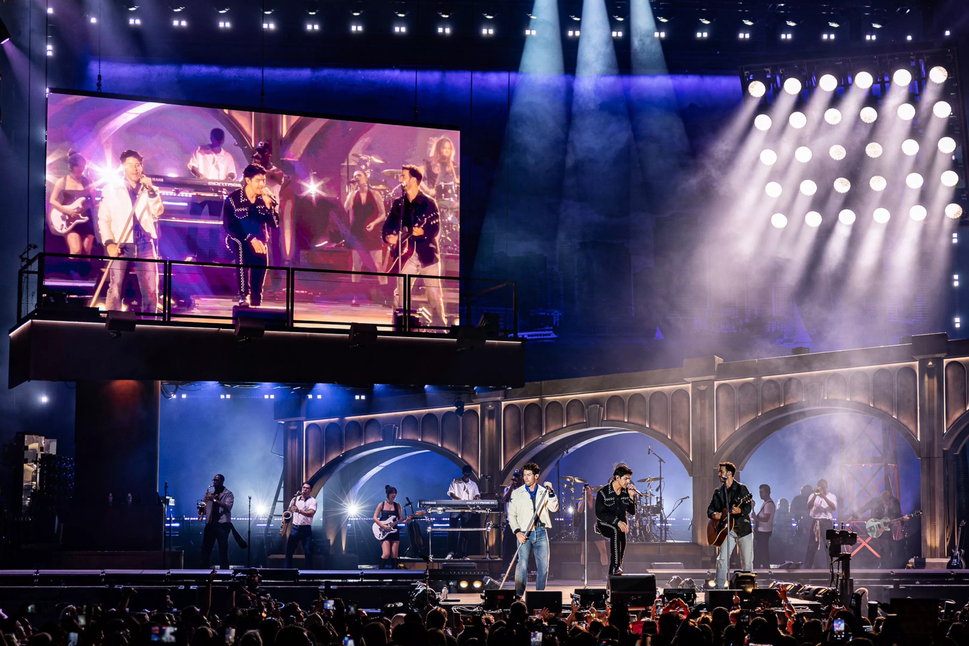 For critics who argue that the brothers’ music lacks depth, the show took a brief emotional turn during the ballad “Little Bird,” from 2023’s The Album; cameras panned through the crowd, revealing signs thanking the band for bringing together families, sparking engagements and providing the happiest of childhood memories. “We’ve told you about ourselves,” said Joe. “But now we want to get to know you.” And what they learned is probably nothing new: their fanbase is loyal to a fault. Among the interviewed were fans who were at their 19th and 73rd shows, as well as a mom who recalled watching Camp Rock with her young daughter. The band took two requests from these fans, singing “One Day at a Time” and “Love Is On Its Way” in what were the first live performances of those songs since 2013 and 2006, respectively.