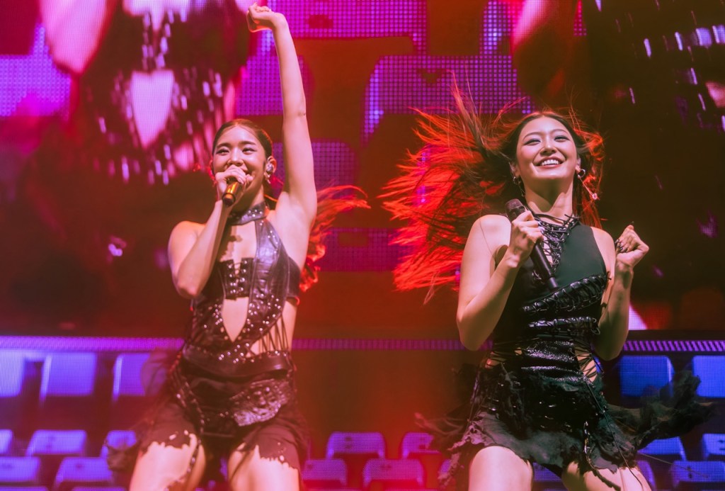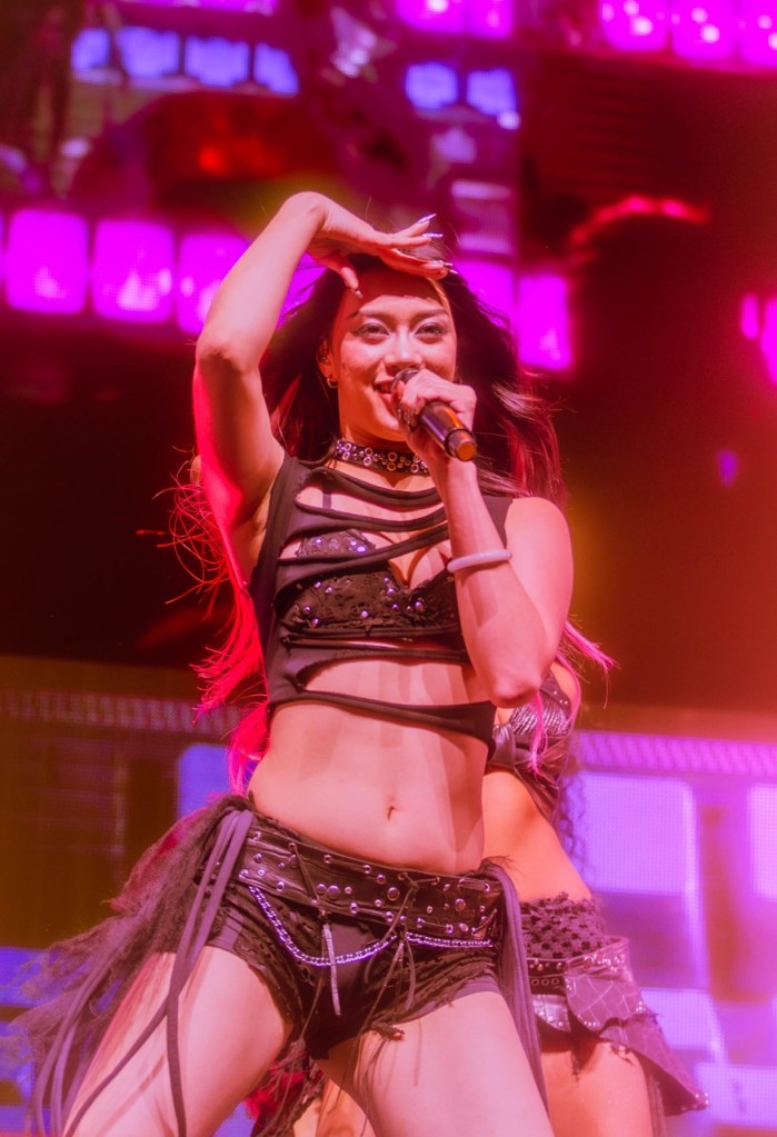 Fans wave their lightsticks to match the contemporary R&B and mid-tempo beats of “I’m Pretty” and “Mean Girls.” What shines throughout both of these and the following track, “Tonight I Might,” is the members’ playfulness and perceived comfort level on stage. It’s a switch-up compared with some of the understandably stressed personas seen in Netflix’s Pop Star Academy, which provided a behind-the-scenes glimpse into their experiences during the survival show. Sunday, the artists, in all their wide-eyed, newfound stardom glory, flash toothy smiles at fans and run up stairs with a giggle to join their colleagues center stage.