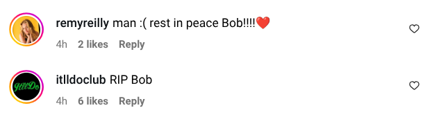 His Name Is Bob was directed by Lisa Johnson Mitchell, who also confirmed his passing in her Instagram Stories.