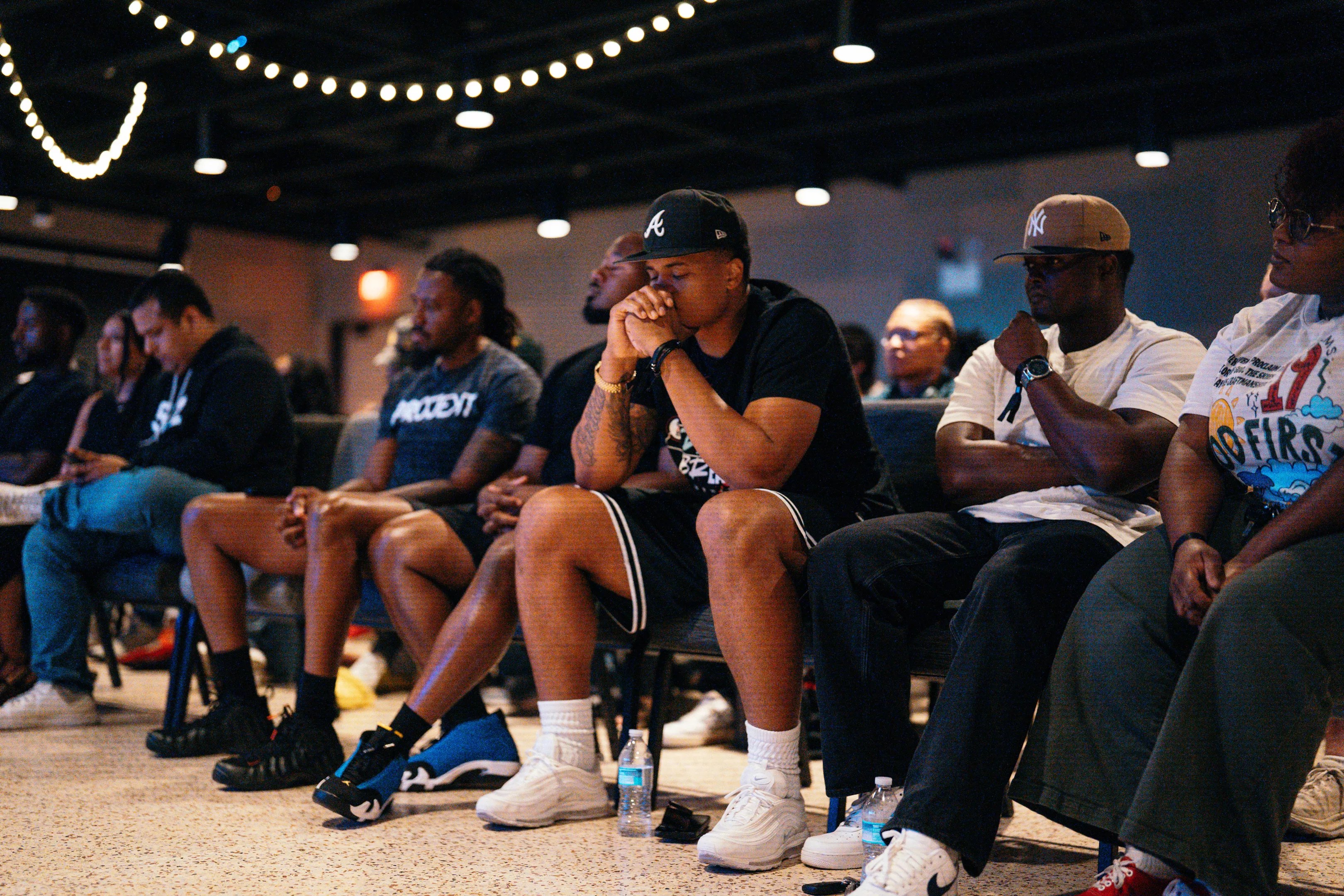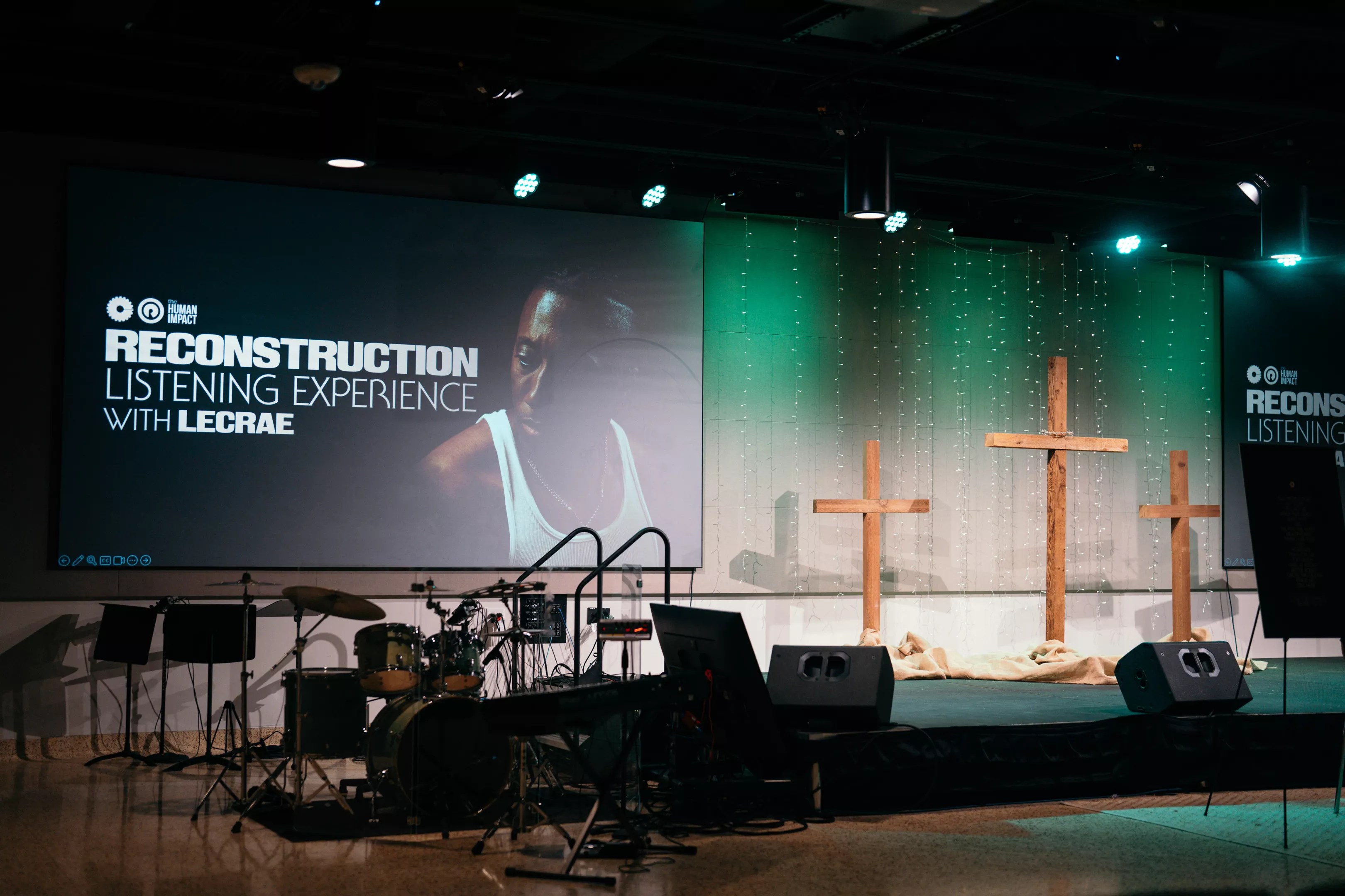 Lecrae partnered with The Human Impact to create a different kind of listening experience. On Tuesday night, with a suggested donation of $20, Lecrae brought fans and local residents together to uplift the Dallas community by assembling care packages for those experiencing homelessness at Watermark South Dallas. After Pastor Marvin said a prayer and Elisabeth Jordan, founder and president of The Human Impact, shared some welcoming words on what The Human Impact is for those curious, Lecrae received a warm round of applause before sitting down in front of us.