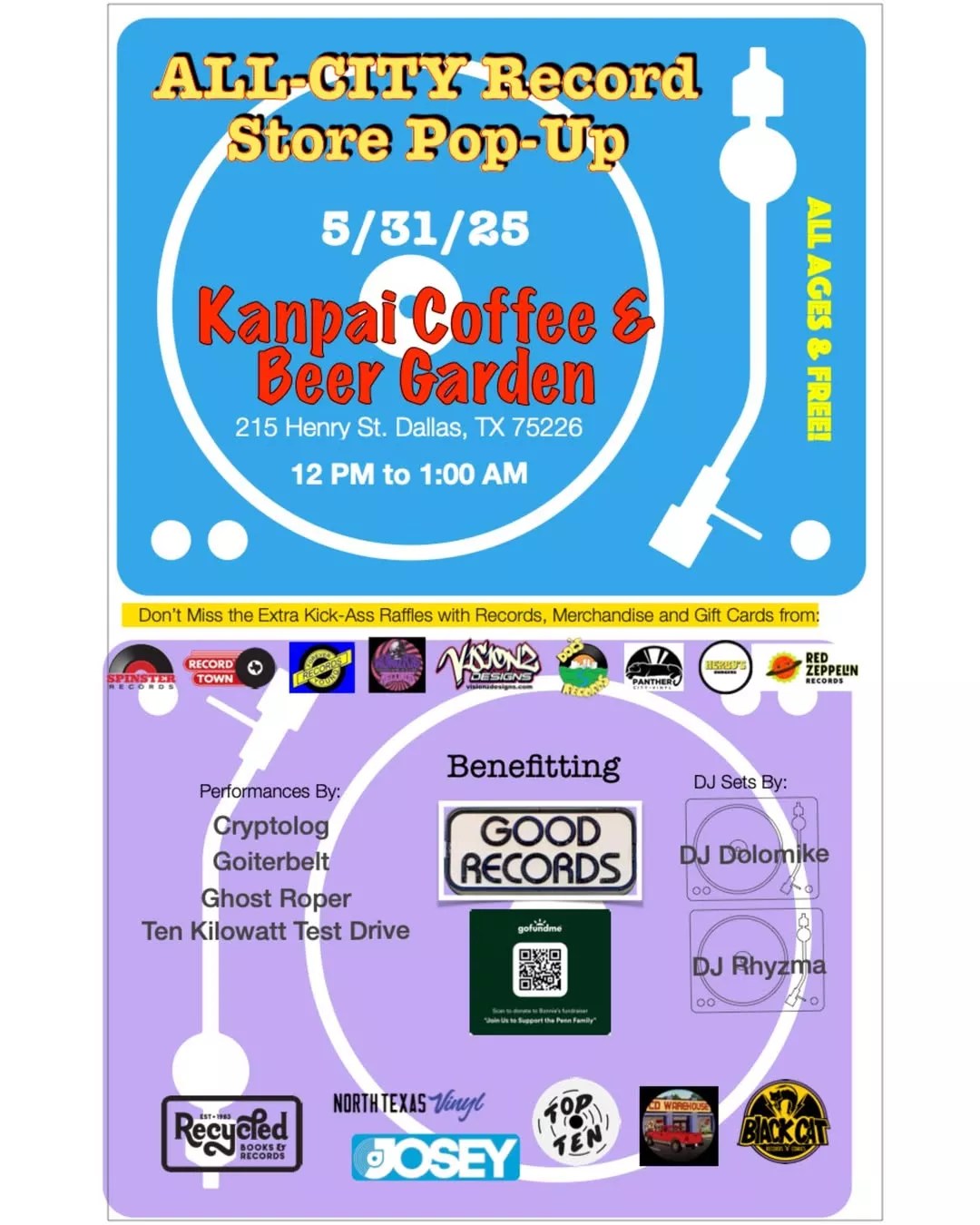 Location: Kanpai Coffee & Beer Garden, 215 Henry St. DallasTouting “extra kick-ass raffles” with records, merchandise, and gift cards from a slew of contributors, including Josey Records, Red Zeppelin, Black Cat, Recycled Books and Records, and many more, this benefit stands apart from the rest. After the recent passing of Penn, Good Records co-founder, the record community is coming together for a record store pop-up from 12 p.m. to 5 p.m. and live music performances to follow by Long Black Car, Ghost Roper and more. All proceeds go to the Good Records family.