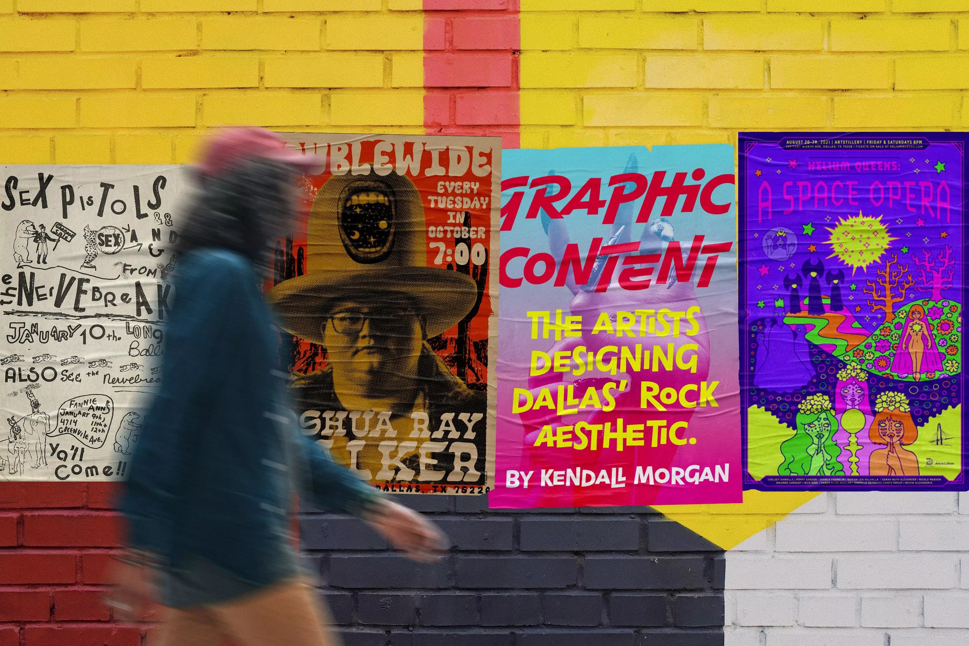 From the early concert posters commissioned by country and blues musicians from Nashville’s 140-year-old Hatch Show Print to the imagery currently crafted by Lewellyn’s Print Shop in Deep Ellum, album covers and flyers have conveyed a three-dimensional vision in a two-dimensional space. In Dallas alone, iconic visuals define artists in many genres, including Charley Crockett, Abraham Alexander and Joshua Ray Walker.