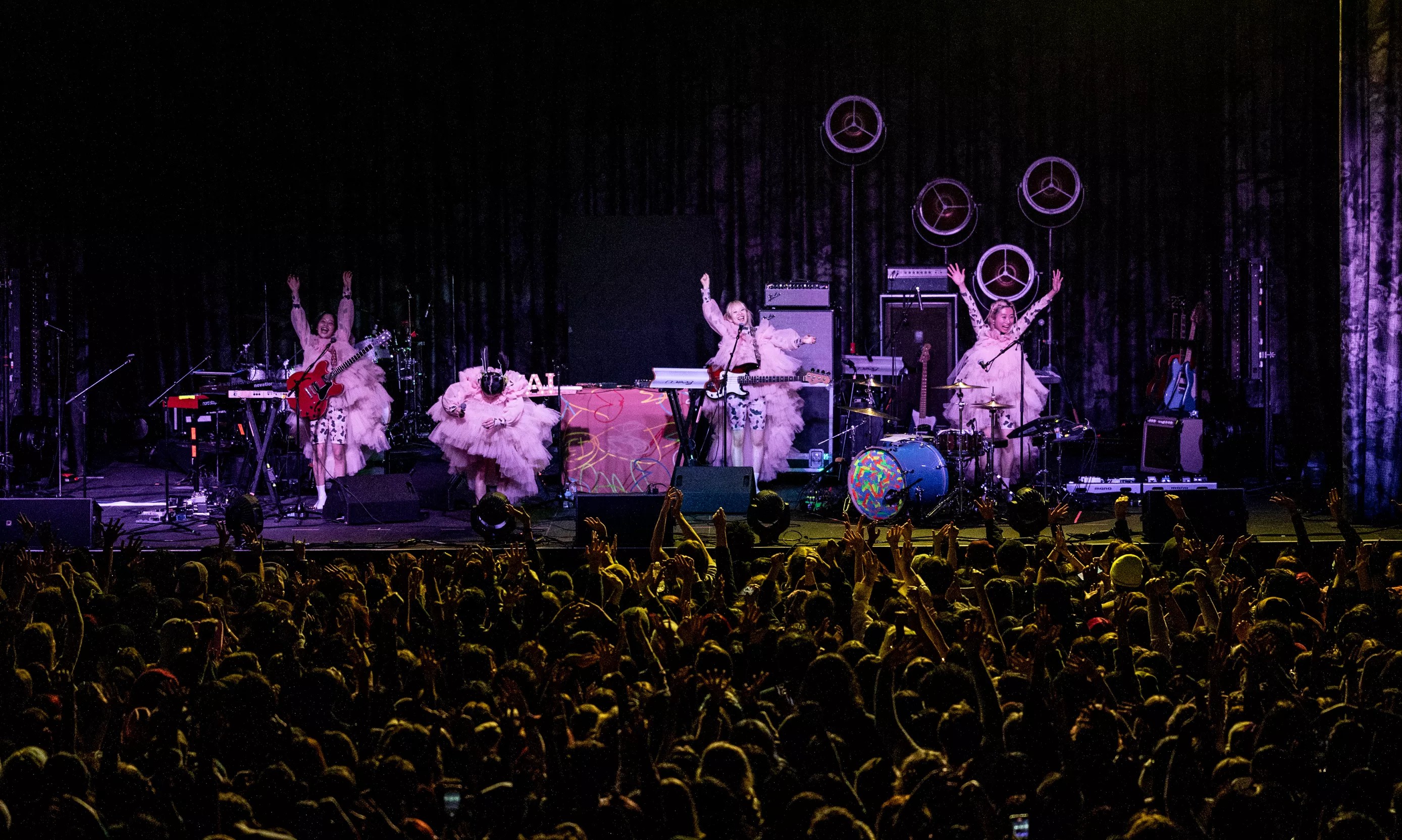 At first glance, the inclusion of Japanese girl band Chai as opener seemed like an additional incongruity. On the surface, they appear to be little more than one of those exhaustively choreographed and packaged puberty bands: polite to a fault, and endlessly cheerful. J Rock band Chai opened for Mitski on Friday. Mike Brooks