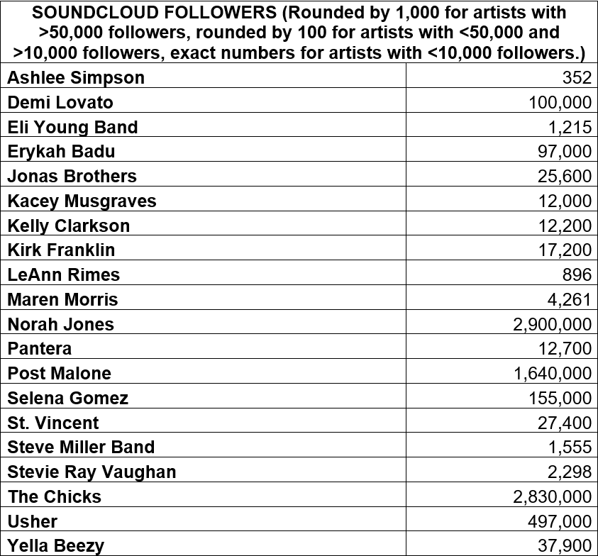 Many might expect hip-hop and pop artists to have a more dedicated following on SoundCloud, but surprisingly, Norah Jones and the Chicks have the highest number of SoundCloud followers; even more than Post Malone.