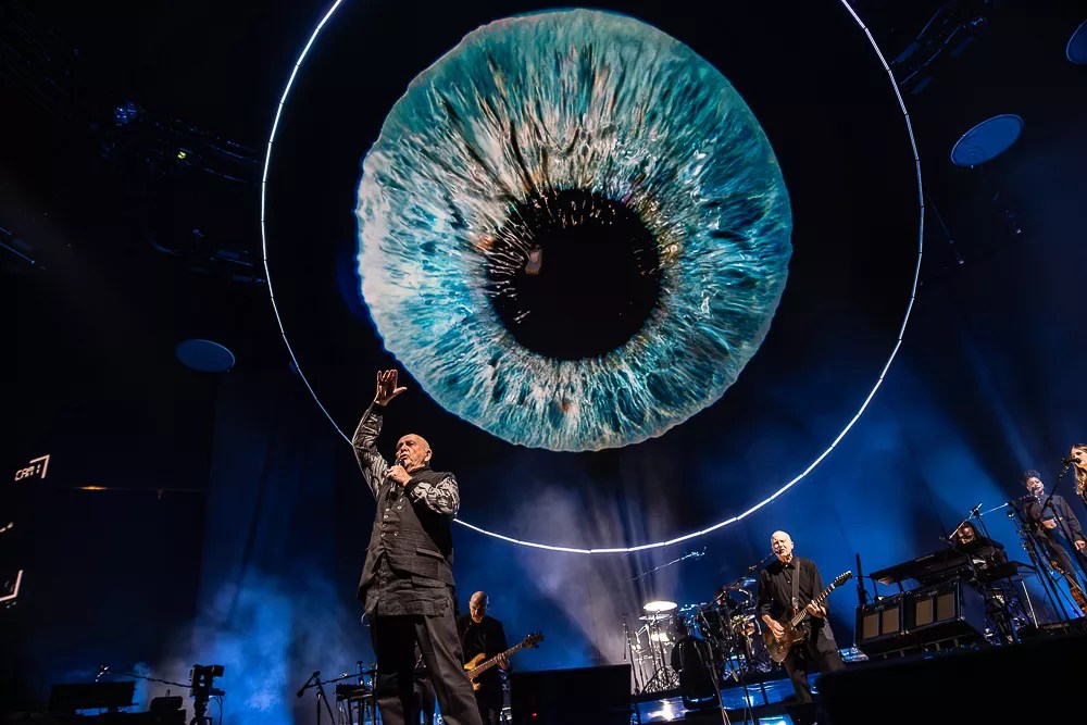 At 73, the Grammy-winning Gabriel could very easily assemble a 90-minute set full of hits, tuck in a couple of deep cuts, tour relentlessly and drift off to sleep atop a pile of money high enough to scrape the heavens. Instead, he’s taken what’s considered a more daring approach: make the familiar a reward for indulging in the unknown. The whole of Gabriel’s Thursday night set was over 2.5 hours long but split in two by a 15-minute intermission. The first set was roughly 70 minutes in length, and the second set a bit longer at 75 minutes or so.