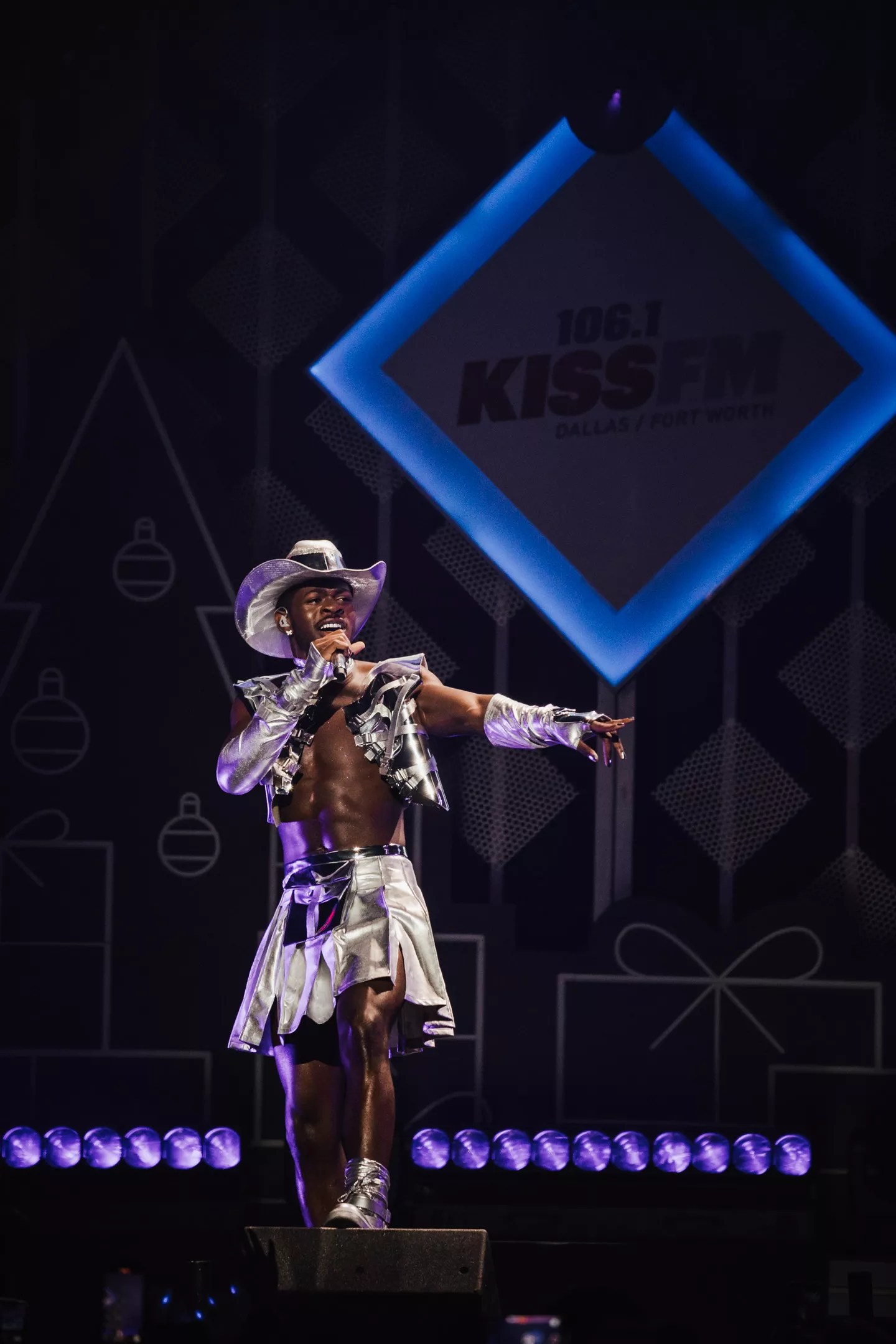 Next up was the one and only Lil Nas X. Dickies Arena made the most appropriate place for the “Old Town Road” singer to don a sparkly cowboy hat as he performed the hit song with a slew of backup dancers, as well as hits from his latest album, Montero. The star set the tone for the likely spectacle for his own upcoming tour.