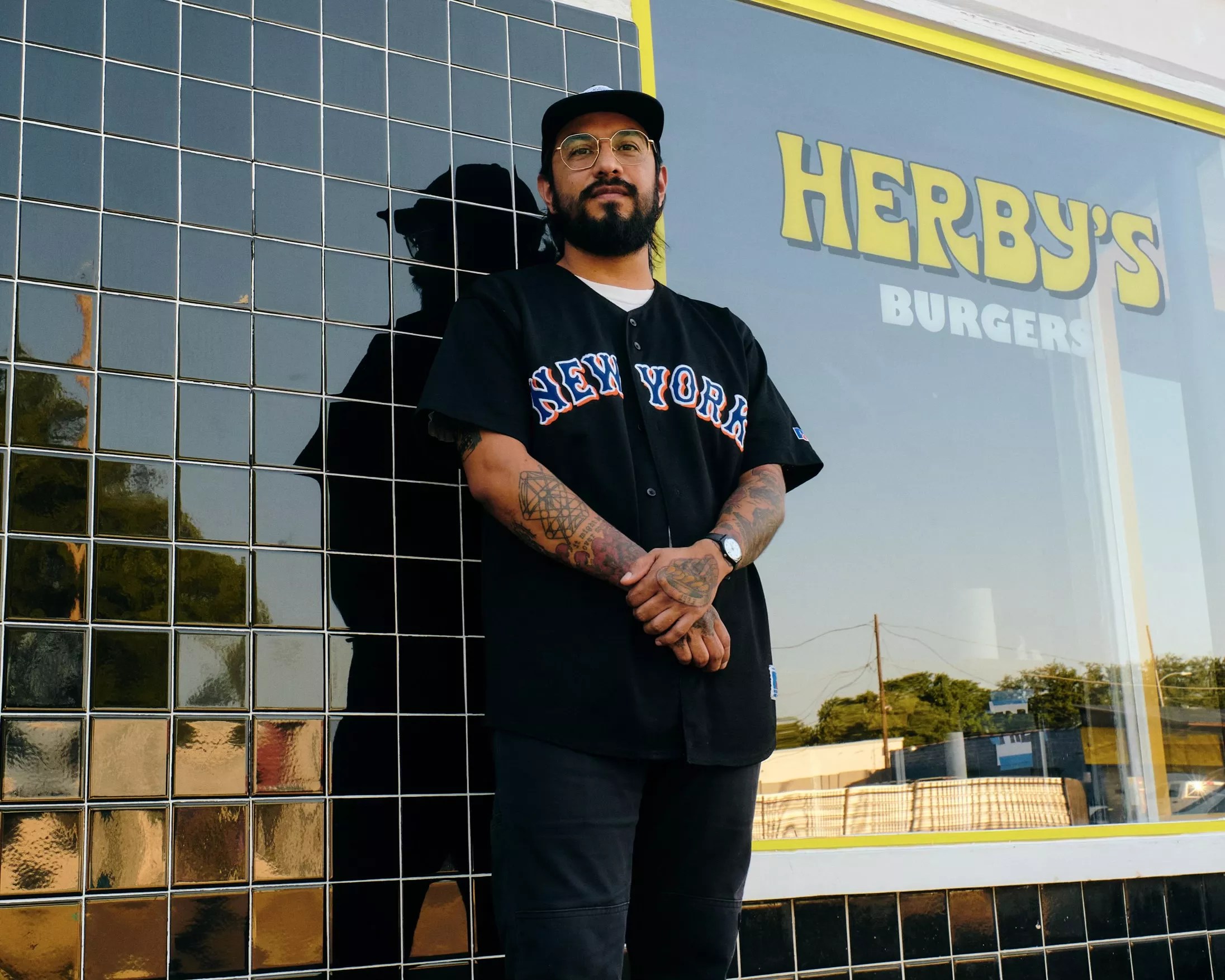 Throughout his career, spinning everywhere from the long-missed Beauty Bar to roller skating parties to pop-up parties with Leon Bridges, and manning the booth at newer clubs such as Double D’s, Rhoten has become well-versed in making things happen, a talent he’s honed since turning his teenage hobby of spinning records into a profitable business. Now he’s taking on the foodie world with the help of Peaberry Coffee owner Elijah Salazar and Rev’s Grilled Cheese’s Jake Saenz. Together, they’re launching Herby’s Burgers in the Elmwood spot formerly housing Pizza Frita.