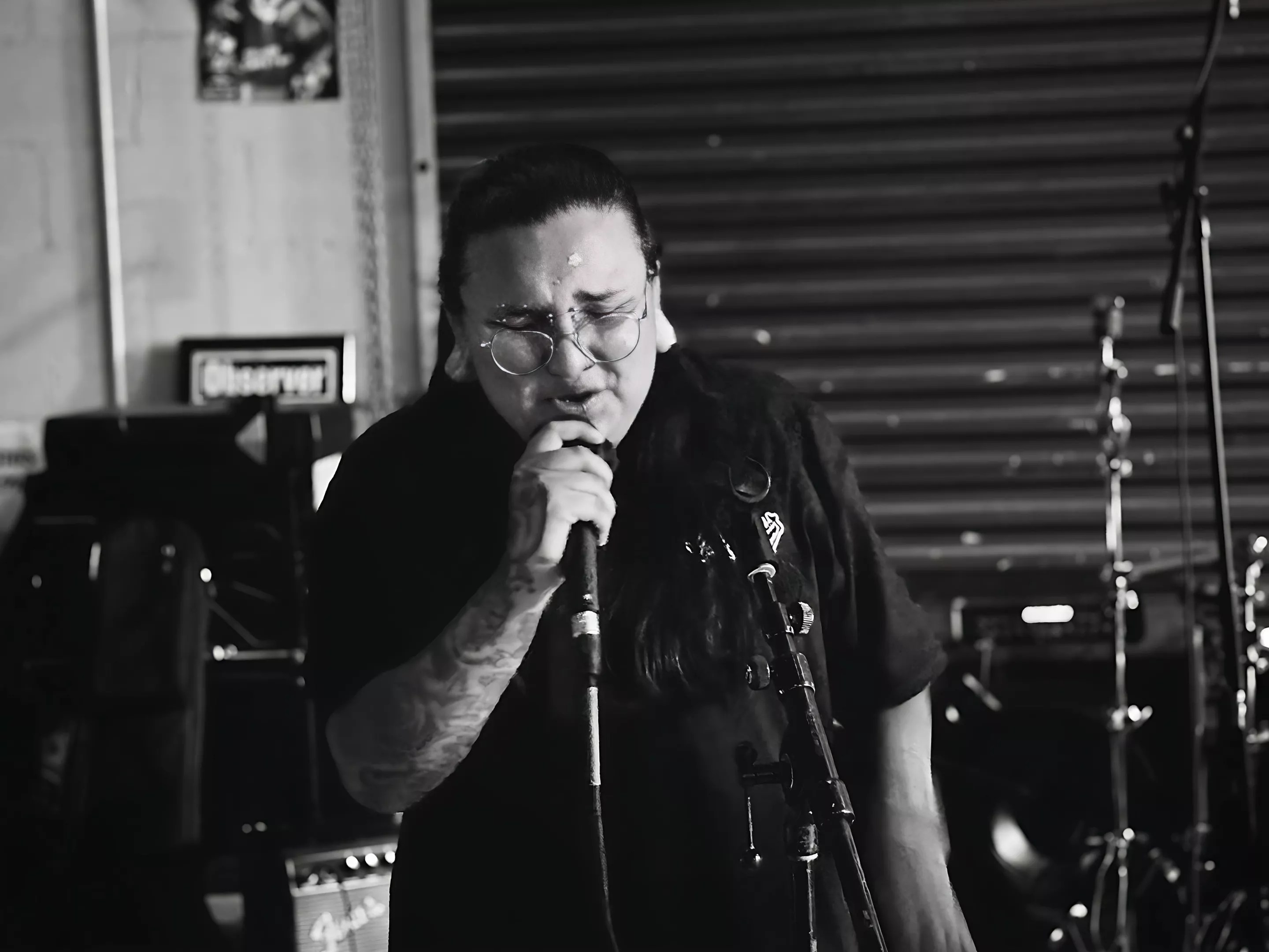 Ana Vasquez of Sucio commands the stage with a striking presence, fusing haunting vocals with authentic emotion.