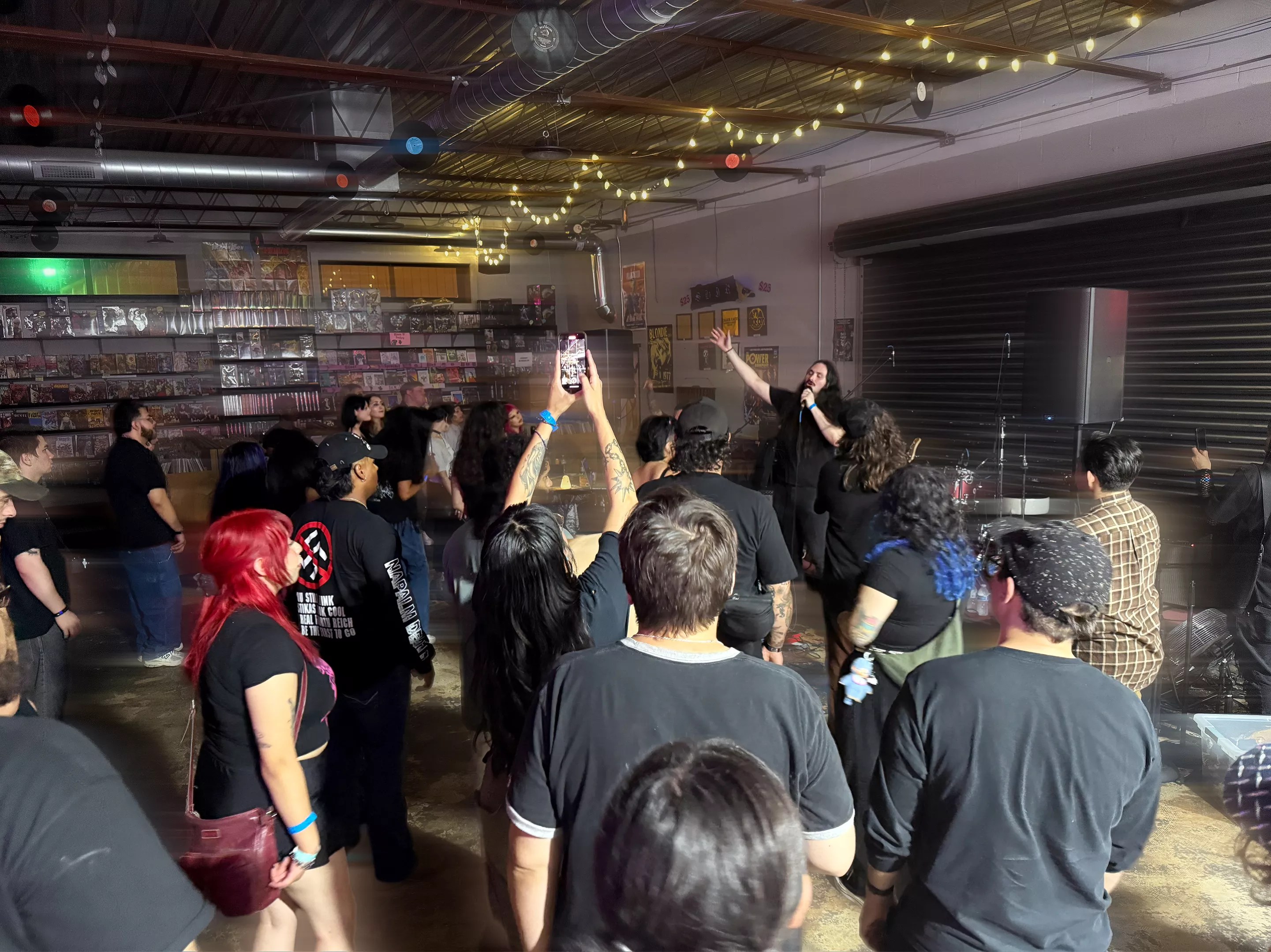 Sucio closed out the night with a performance that transformed the once-stoic audience into a dancing, pulsating crowd, as hypnotic rhythms rippled effortlessly through the room. Rooted in Arlington’s rich cultural fabric, the Latinx darkwave band weaves a mesmerizing soundscape that stands apart in the local scene. Their music, steeped in tradition yet fearlessly forward-looking, blends the brooding allure of ’80s goth with Mexican keyboard textures and European post-punk flair.