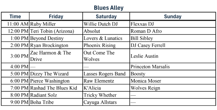 On the “Blues Alley” stage at on 2801 Clover St., we’re most excited for the Cayuga All-Stars on Saturday night at 9 p.m.