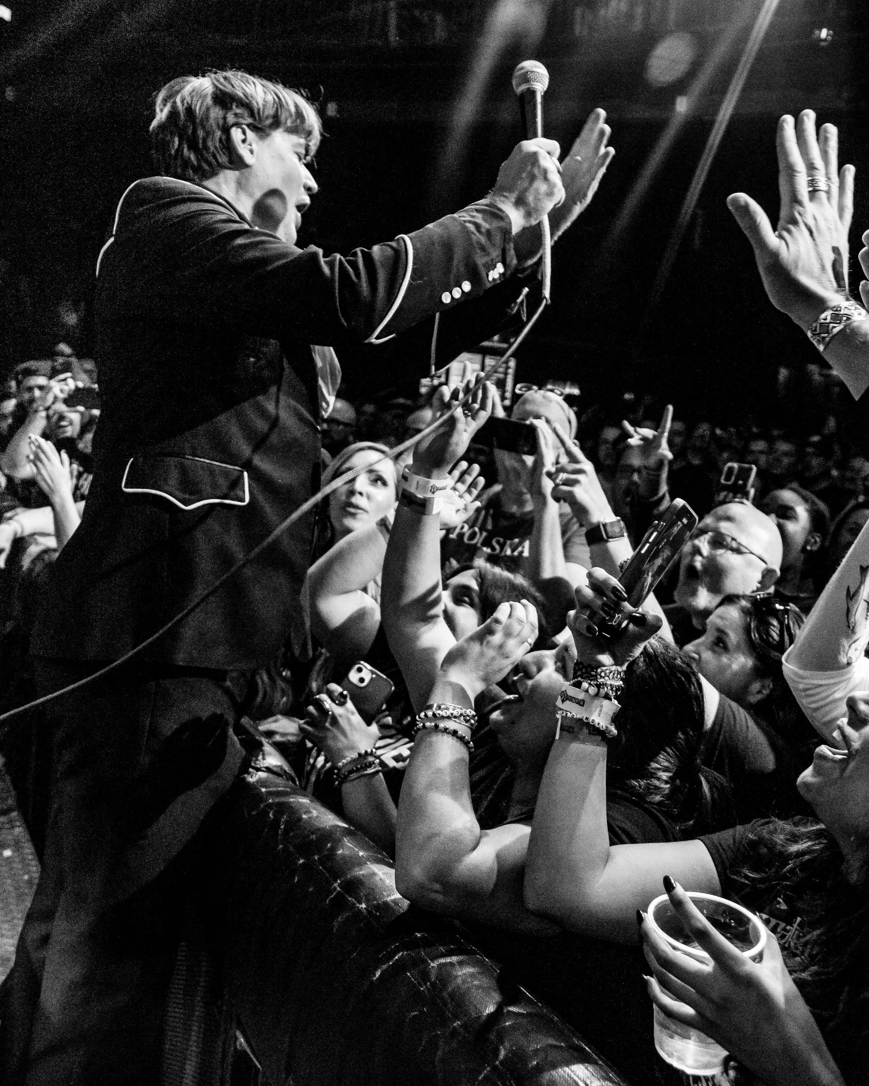 The man they call Howlin’ Pelle Almqvist shoved his hair out of his eyes and stood at the lip of the stage, surveying the screaming bodies in the semi-dark.