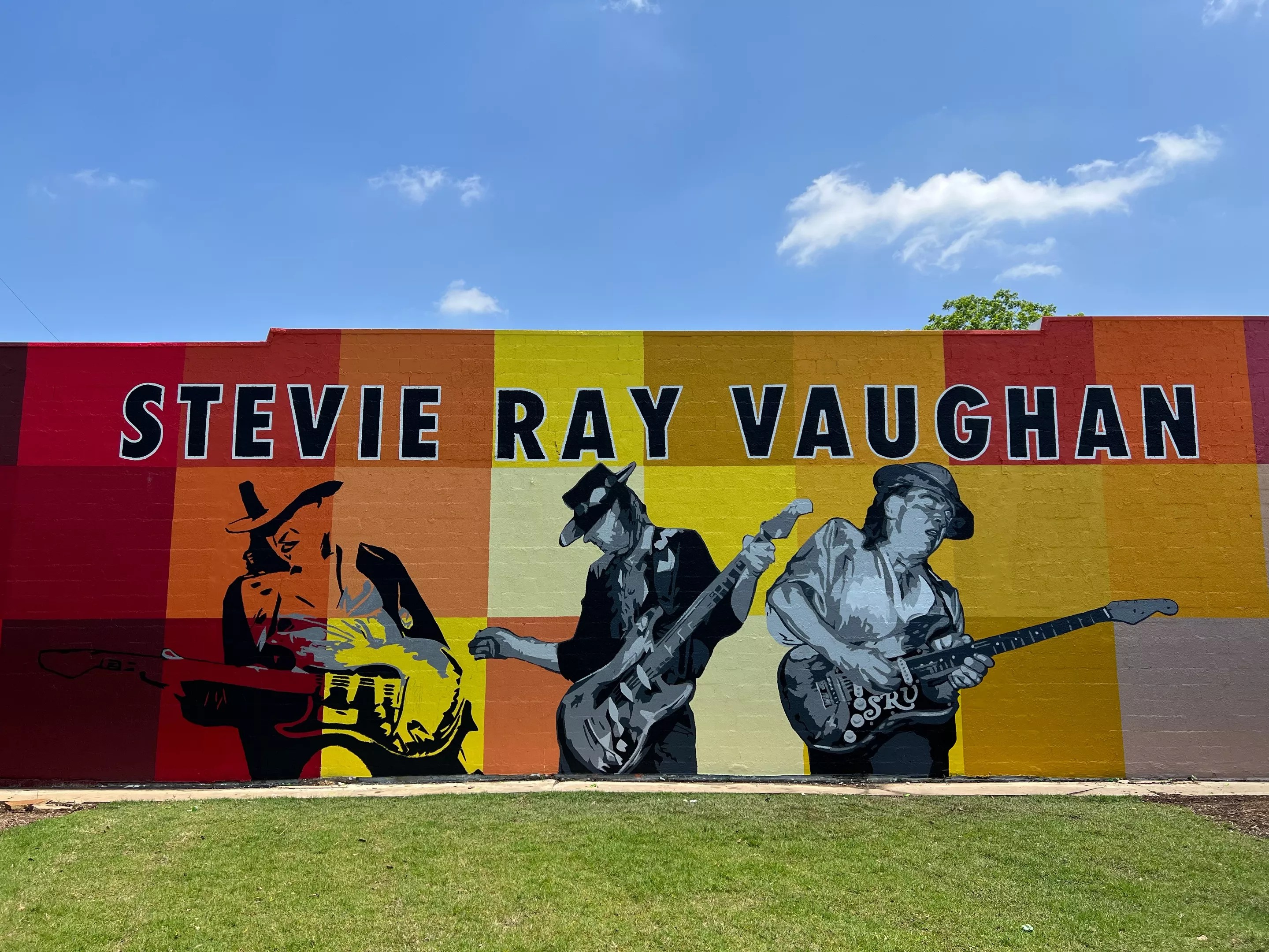 Though the park was called the Stevie Ray Vaughan Park, Hunter had other ideas for the mural. “I wanted to include his brother Jimmie,” he says. “He is overshadowed by Stevie, but Jimmie is still playing and he’s a great musician.”