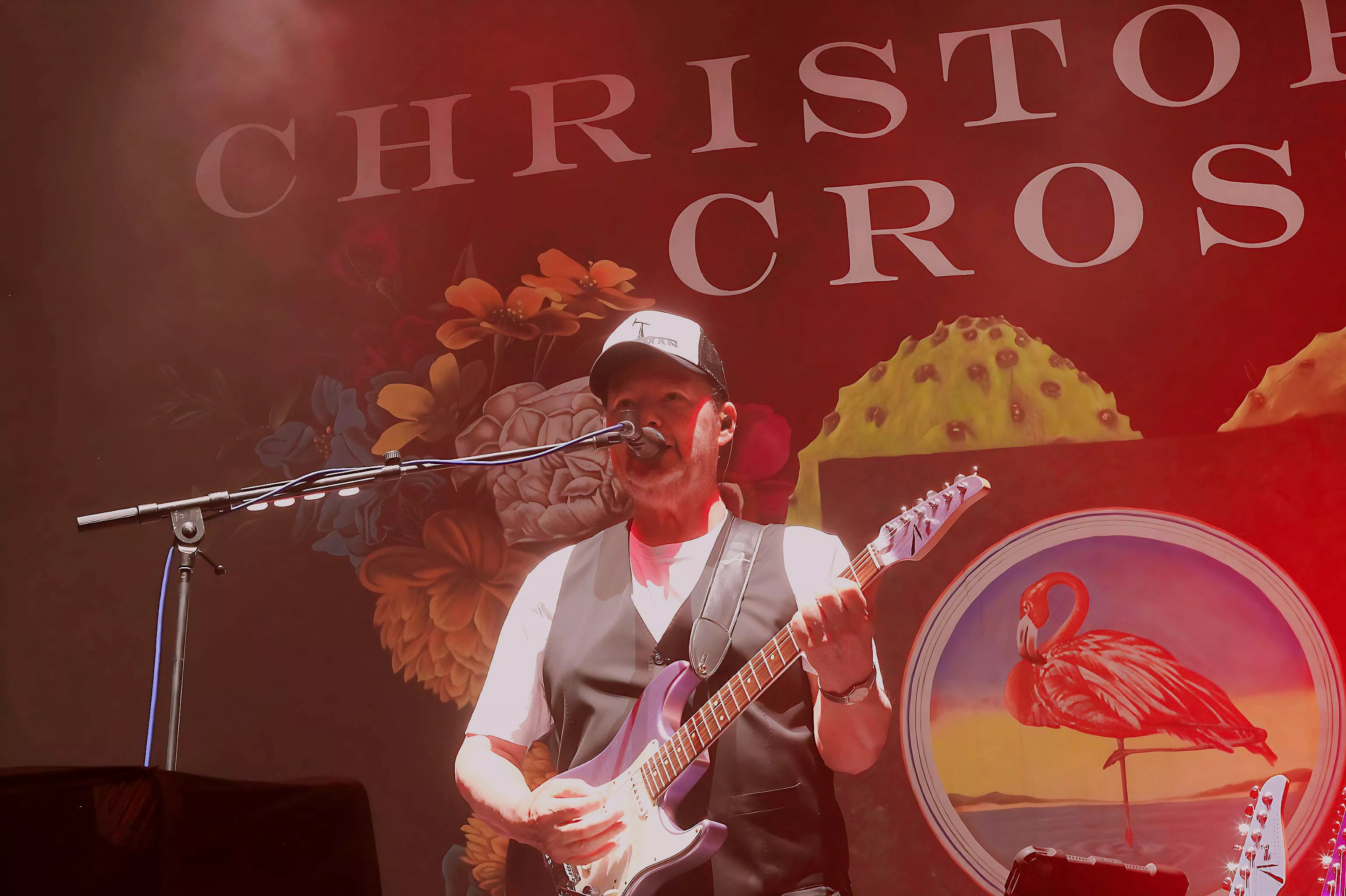 Christopher Cross, sporting his Landman hat, delivers a heartfelt performance with his signature smooth style.