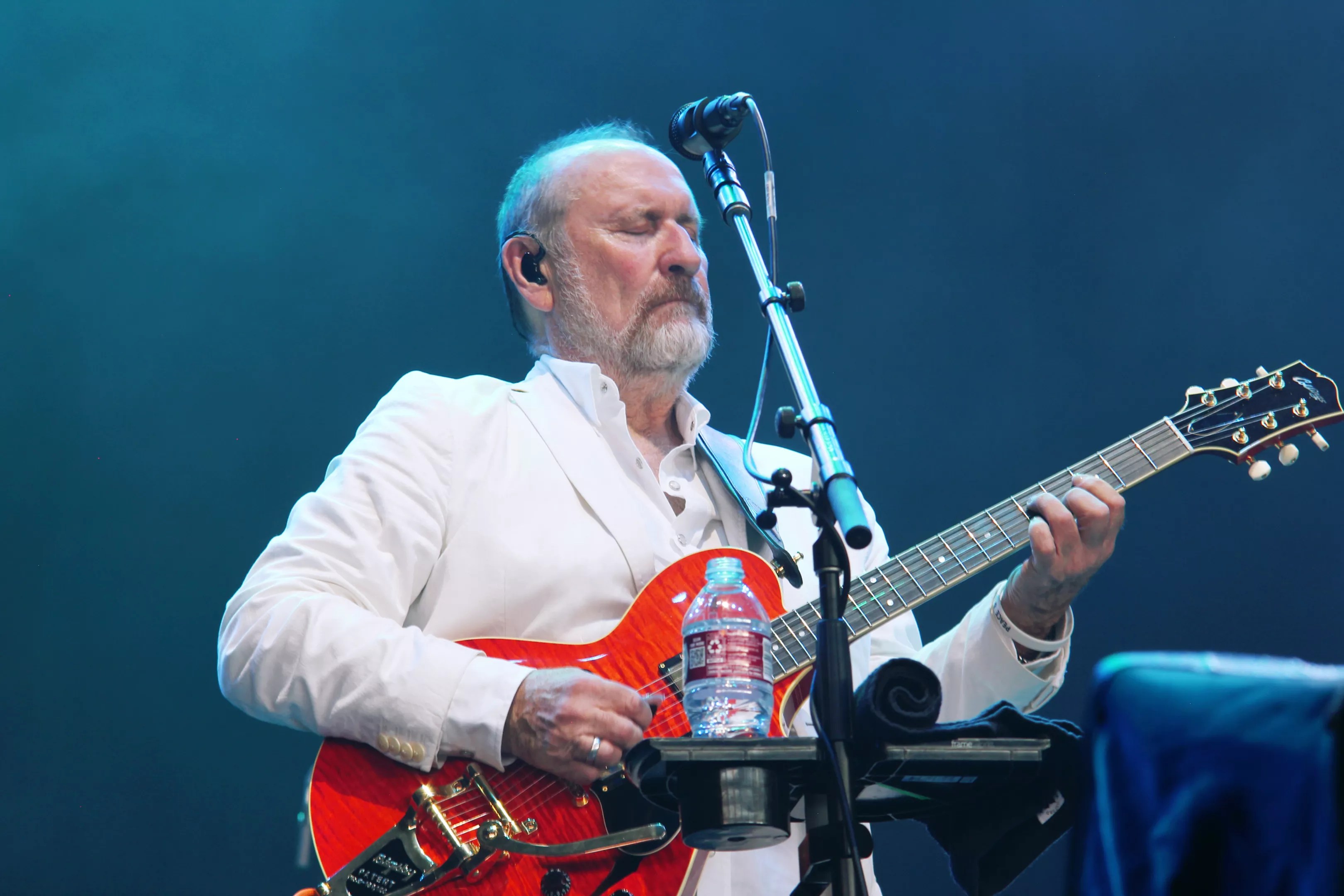Steve Lukather, with his iconic flowing white locks, delivers a soulful guitar solo that electrifies the stage. Preston Barta