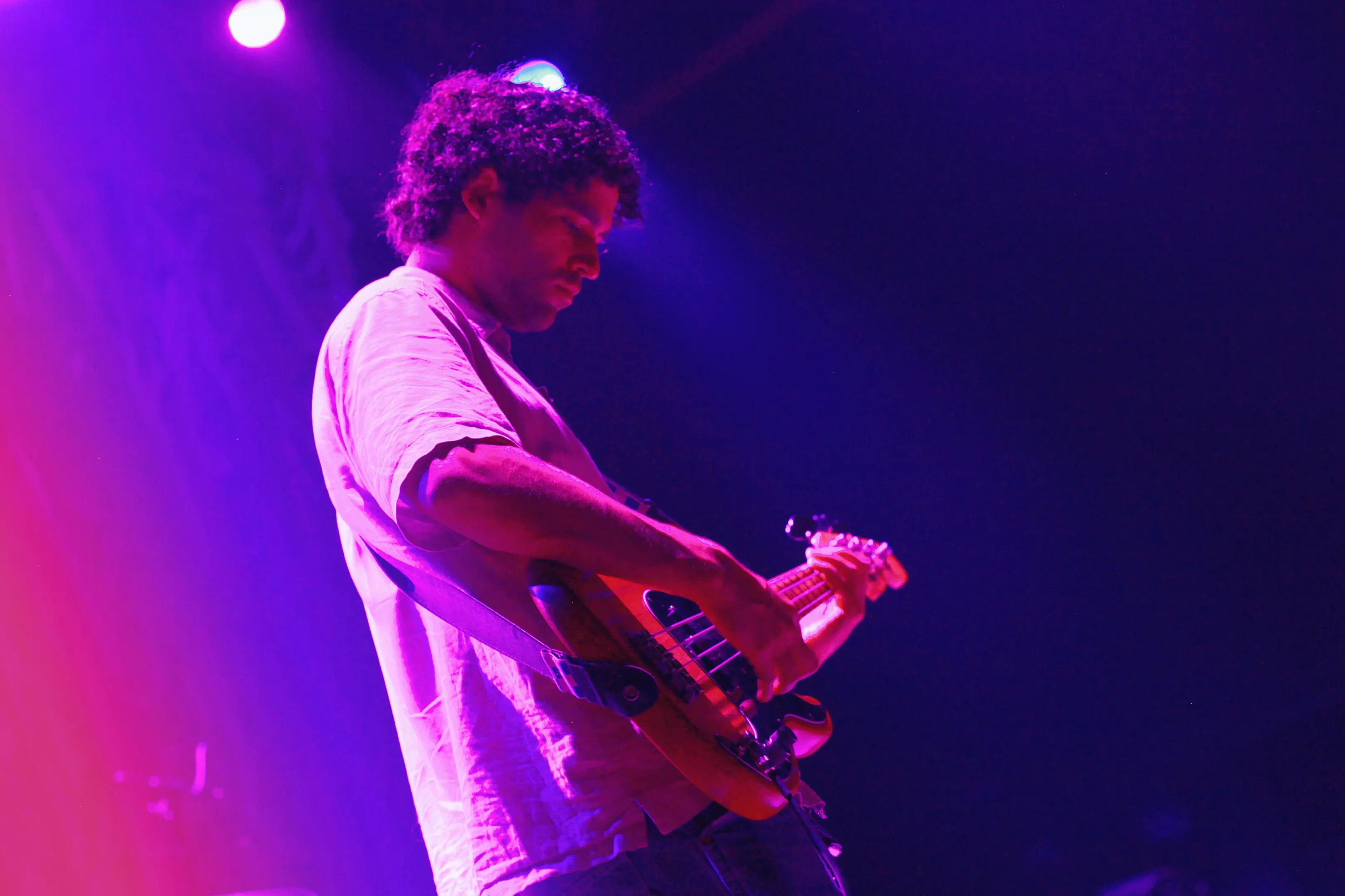 Their sound is deliberate and dynamic, equal parts introspective fog and cutting clarity. Think Hum, with a Pink Floyd-like willingness to explore terrains that twist and stretch before they settle. Bathed in the dim glow of purples and blues, the hazy room felt like an unspoken dialogue between the band and listeners, with heads nodding in quiet unison.
