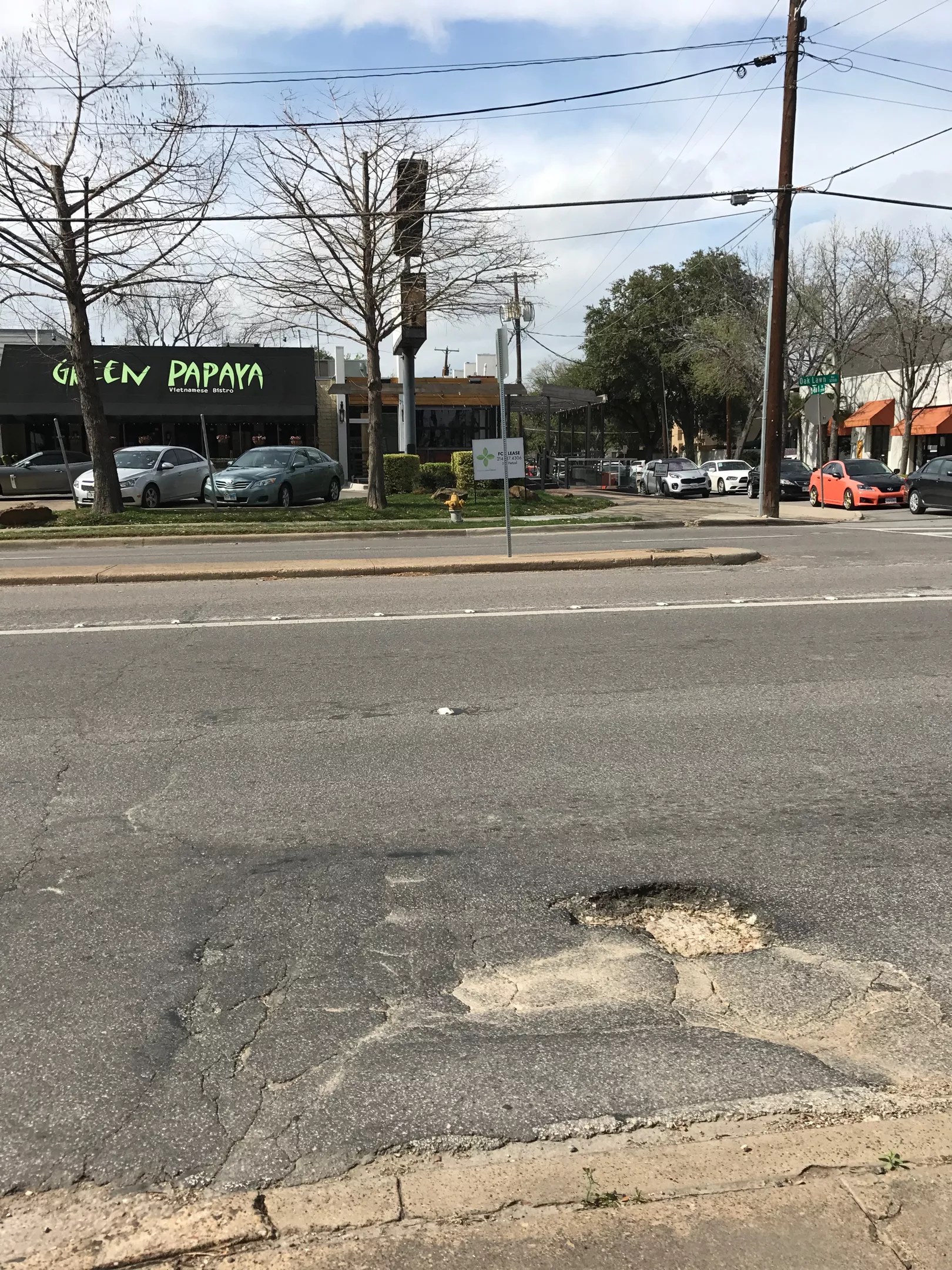 Across from Green Papaya on Oak Lawn is a pothole so deep and so utterly amazing in its own right, it deserves an award. What is this? How does this happen? How many people have fallen into the hole and were never seen again?