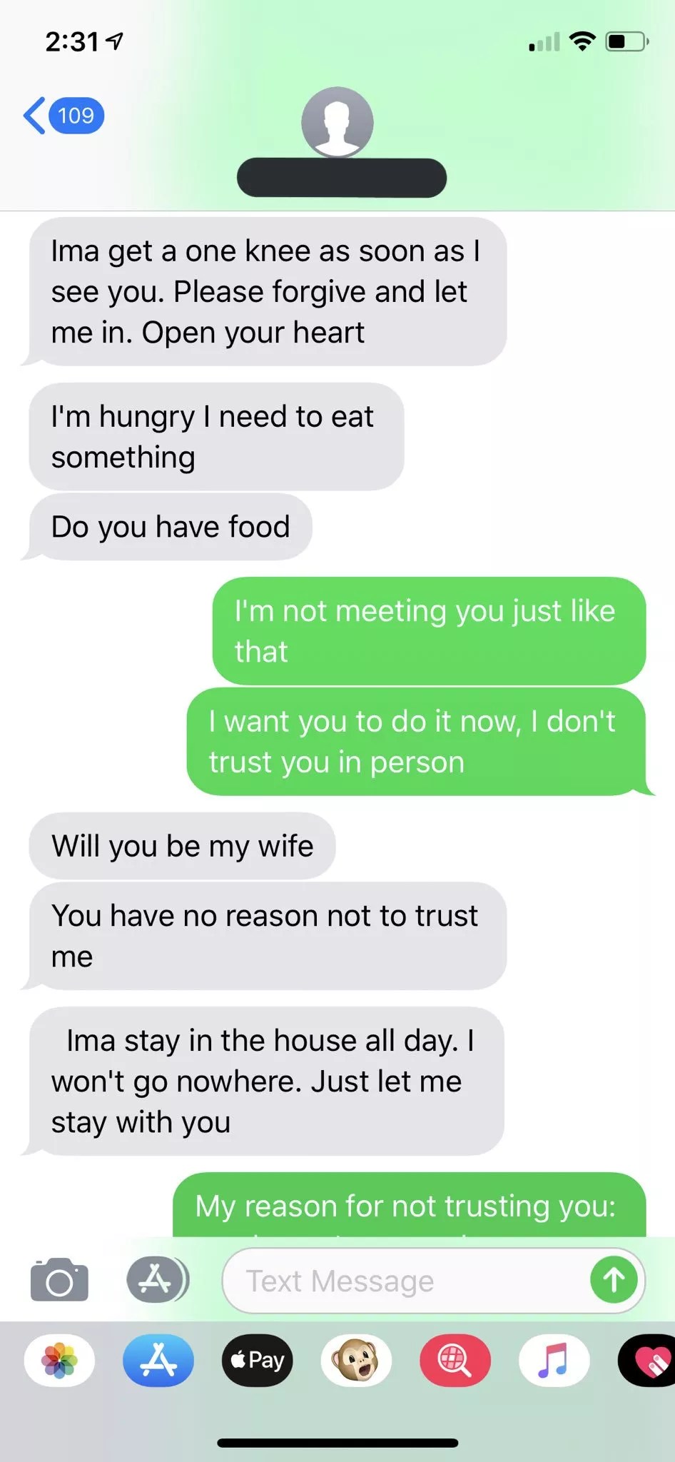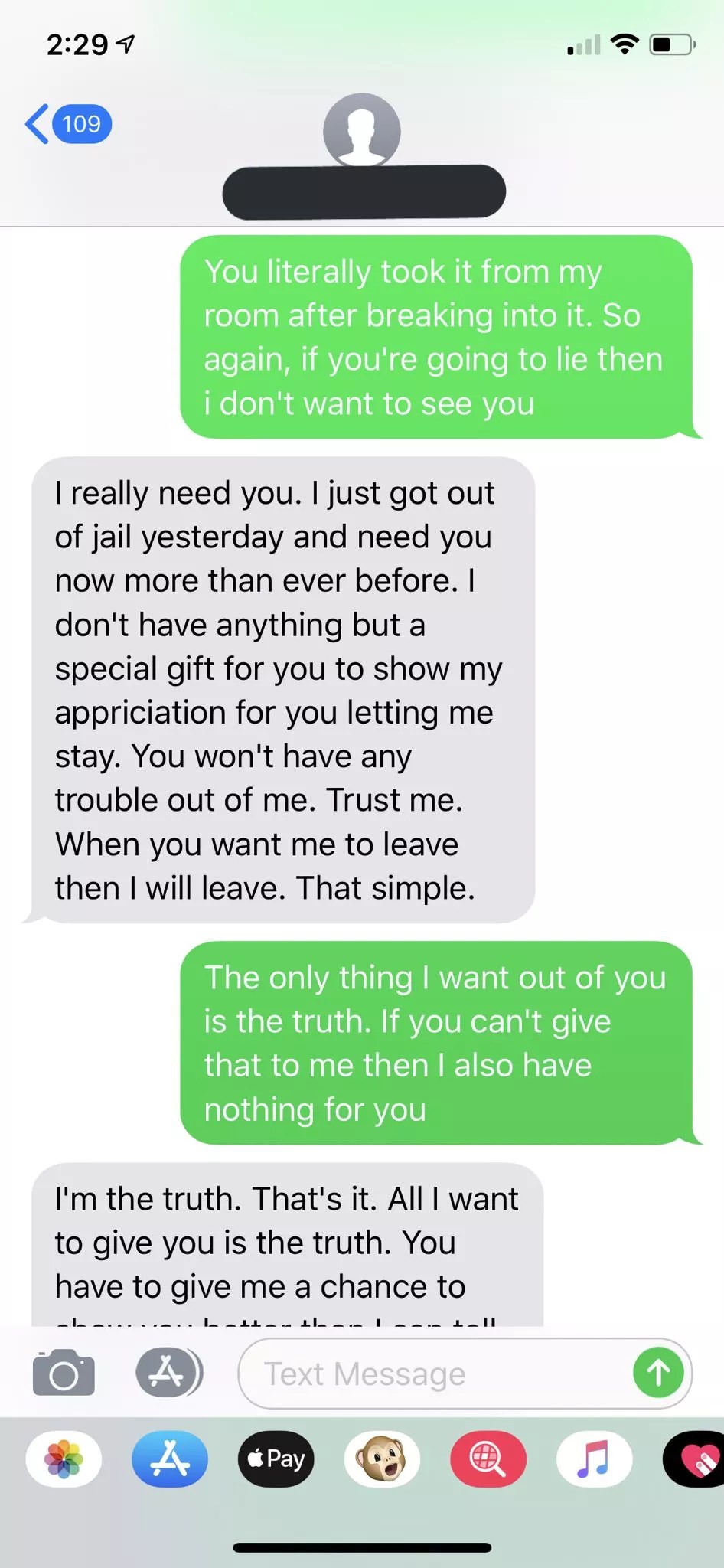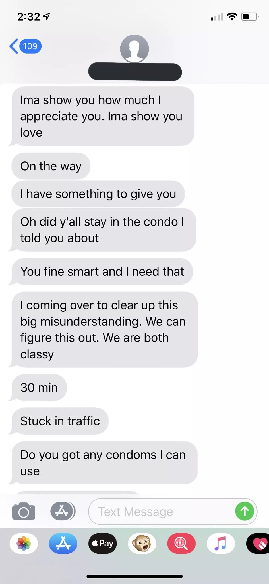 Texts between Khawaja and Jackson. Airbnb guests and hosts can gain access to each others’ phone numbers through the app.