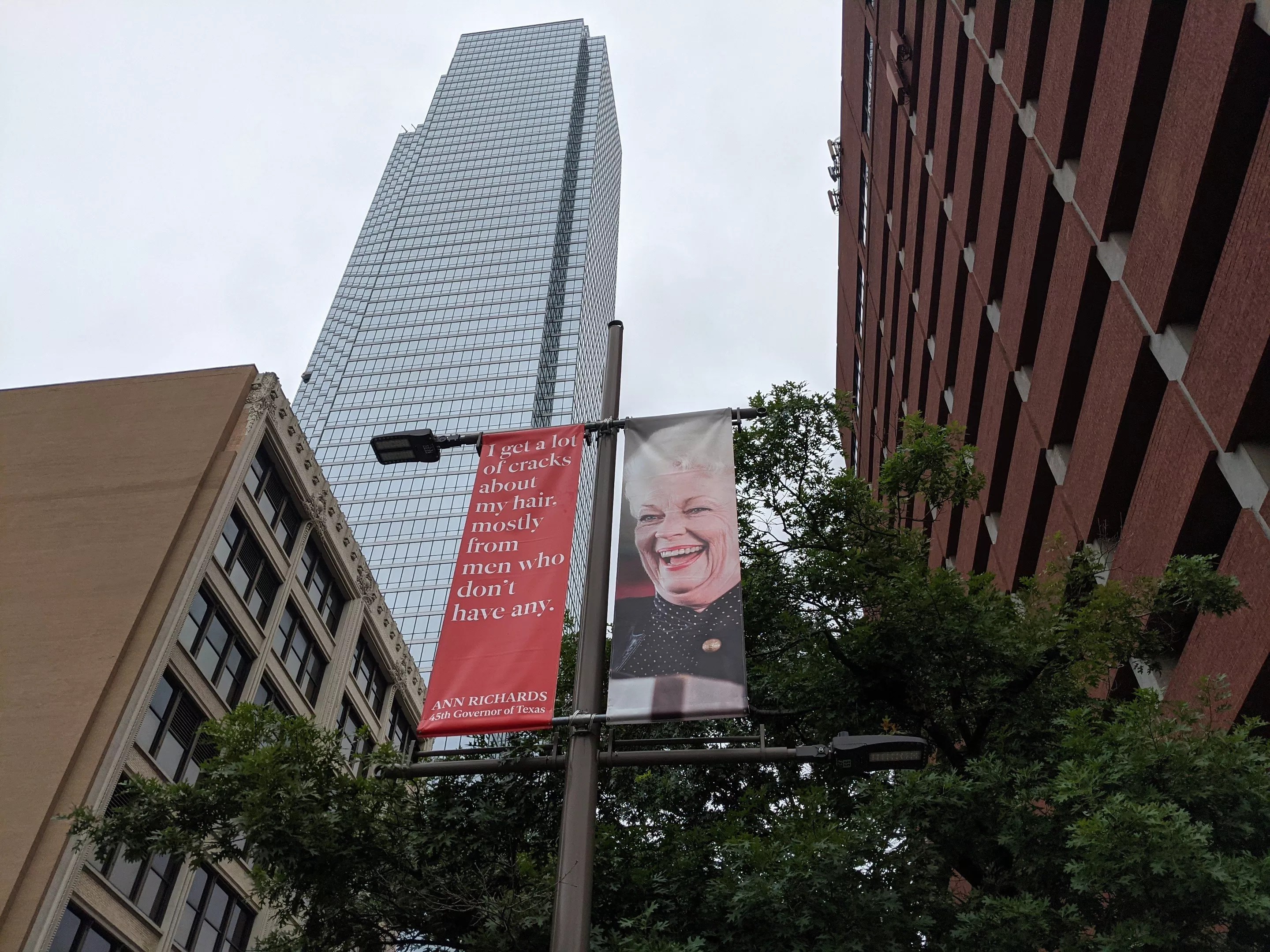 Now, three decades after that inaugural address, a new banner campaign in Downtown Dallas seeks to honor Richards’ legacy.