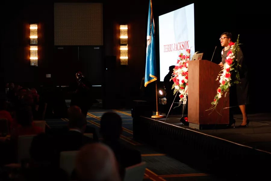Local gospel singer Terri Jackson lost her necklace during the climax of her stunning vocal performance at the Botham Jean Foundation’s Red Tie event.
