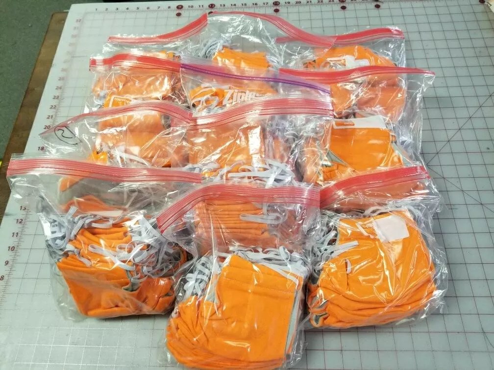 Aldrich said jail officials asked for 2,000 washable cloth masks. Those for inmates had to be gray or orange, she said, while guards were sewn black ones with metallic nose guards. All were made with elastic bands.
