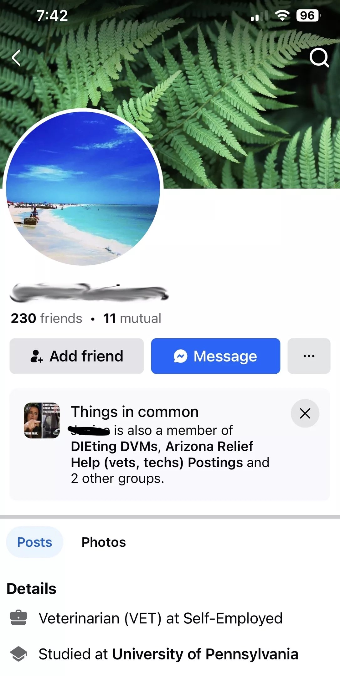 By using “we,” Burns didn’t specify in the email whether she had personally set up or used the fake profile. Also in the email, Burns mentions “a” Facebook group, but screenshots provided to us by Facebook group moderators and other veterinarians show the fake profile was a member of multiple private groups, not just one, designated for vets only.