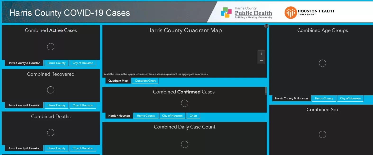 Harris County publishes an up-to-the-minute dashboard of COVID-19 information for Houston.
