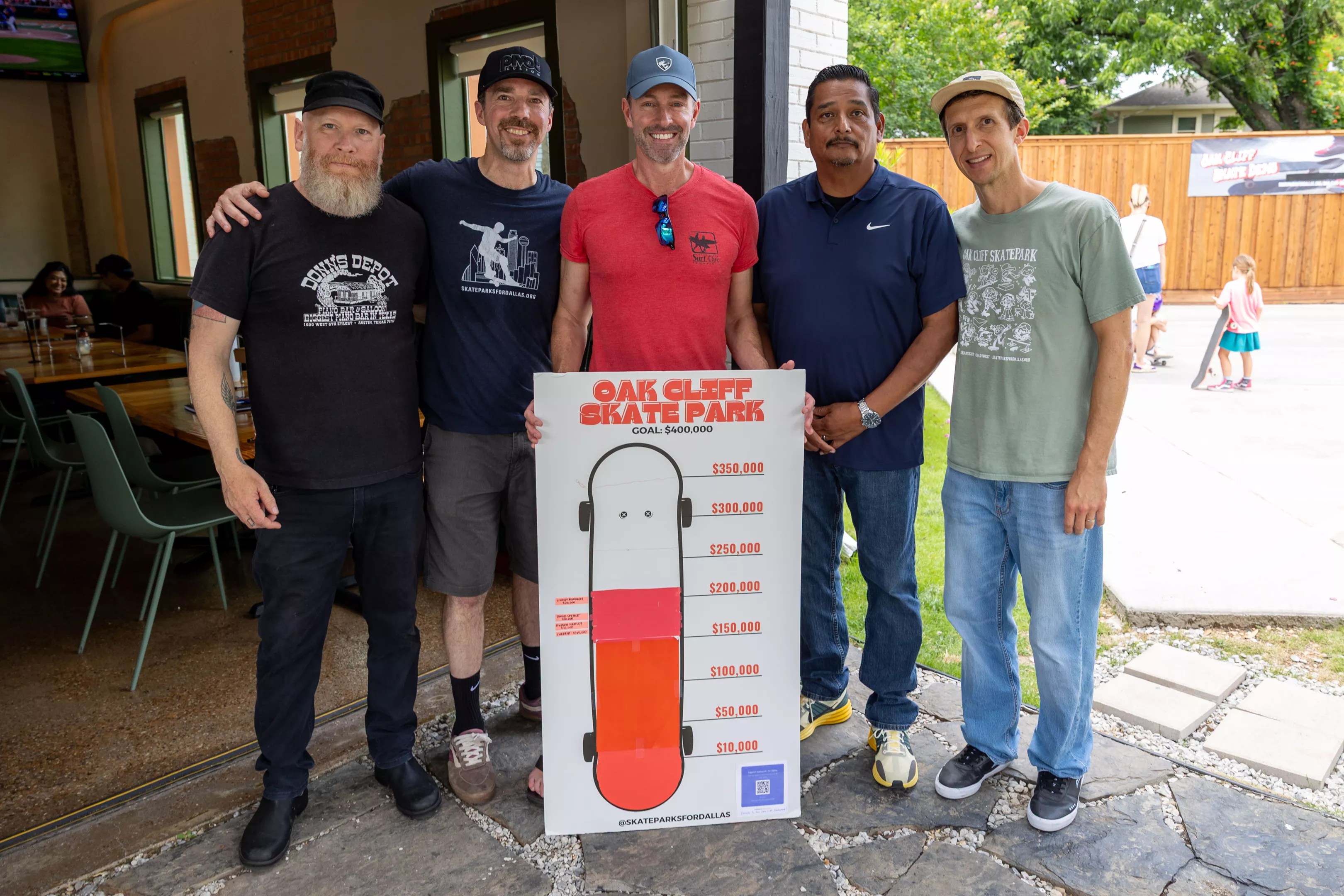 Oak Cliff Skate Park advocates Chad Dolezal, Clinton Haley, Chad West, JR Huerta and Ryan Schorman.