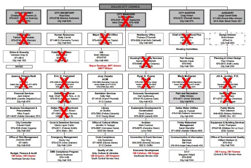 Dallas City Council member Scott Griggs, a careful student of structures, has been keeping track of the City Hall organization chart since the January departures of former City Manager A.C. Gonzalez and former City Attorney Warren Ernst.