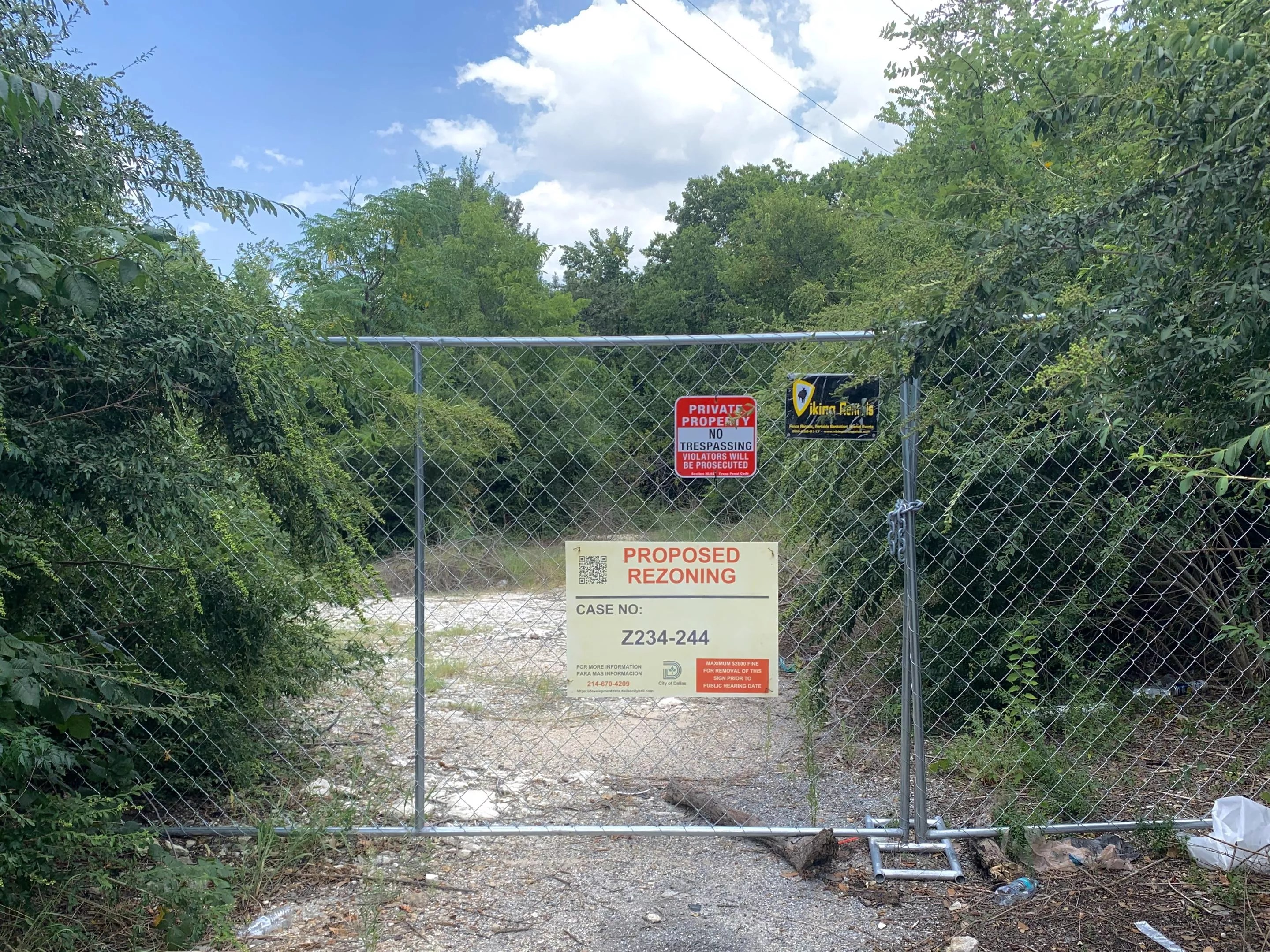 The overgrown, sloping terrain between the creek and the neighborhood is owned by Christian Chernock, a long-time Oak Cliff resident and developer, who also happens to be the district’s representative on the City Plan Commission.