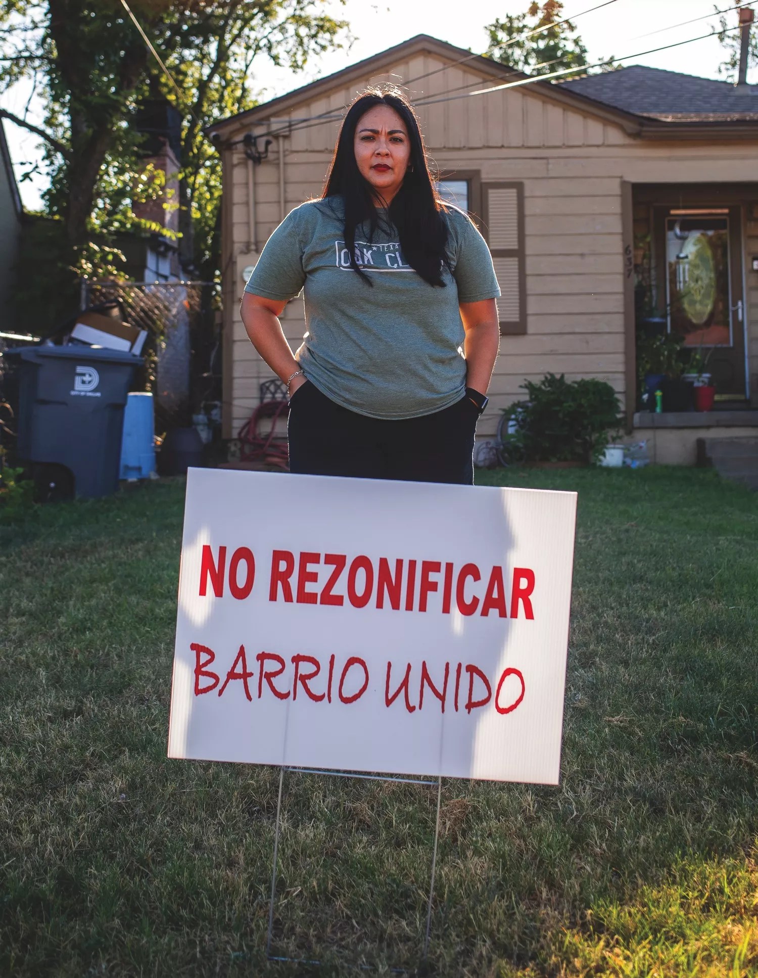 This time, though, the neighbors are vehemently against Chernock’s plans. The same NO REZONE signs that line Hampton Road are in front of almost every house on North Boulevard Terrace, except they’re in Spanish. Yesenia Serrano stands in front of the house where she grew up in North Boulevard Terrace, where her mother still lives. The family opposes rezoning proposed for nearby land. Mark Graham