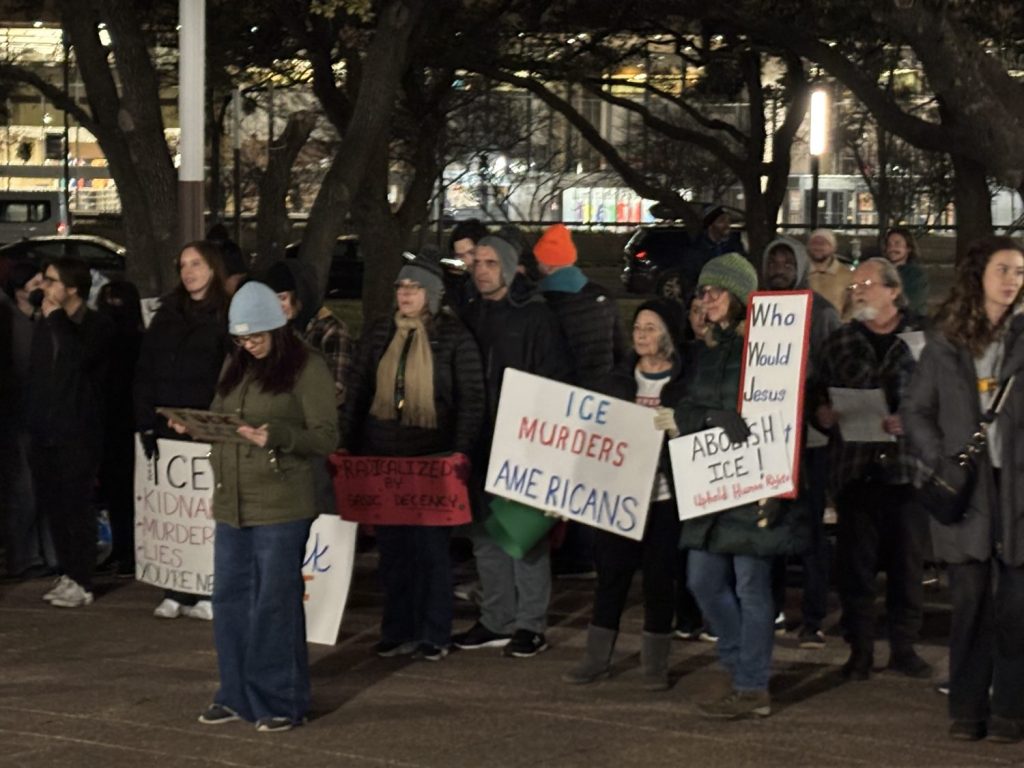 Hundreds gathered near City Hall in Dallas after dark on Thursday as the temperature again dropped to near freezing to protest against ICE and President Donald Trump’s aggressive immigration policies. Last night’s rally was the first large local gathering since federal agents killed 37-year-old Minneapolis nurse Alex Pretti during a protest on Jan. 24.